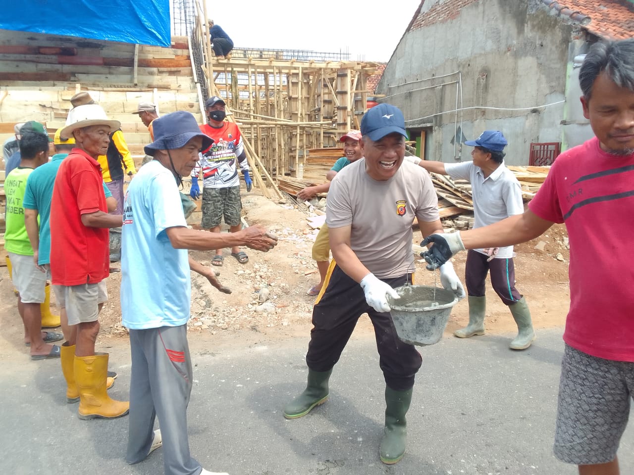 Kapolsek Bantarujeg AKP Baban Kurbandi Gotong Royong Bersama Warga dalam Pengecoran Masjid di Desa Bantarujeg