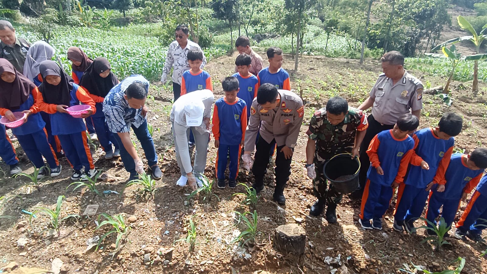 Eksposelensa.com – Majalengka — Kapolsek Majalengka Kota IPTU Piki Krismanto, S.H., M.H. menghadiri kegiatan Penanaman 1000 Pohon dan Pemupukan Jagung bersama Komunitas Petani Cilik SDN Babakanjawa III yang berlangsung di kawasan Batu Pantun, Pancurendang, Kelurahan Babakanjawa, Kecamatan Majalengka, Kabupaten Majalengka pada Kamis (27/11/2025).