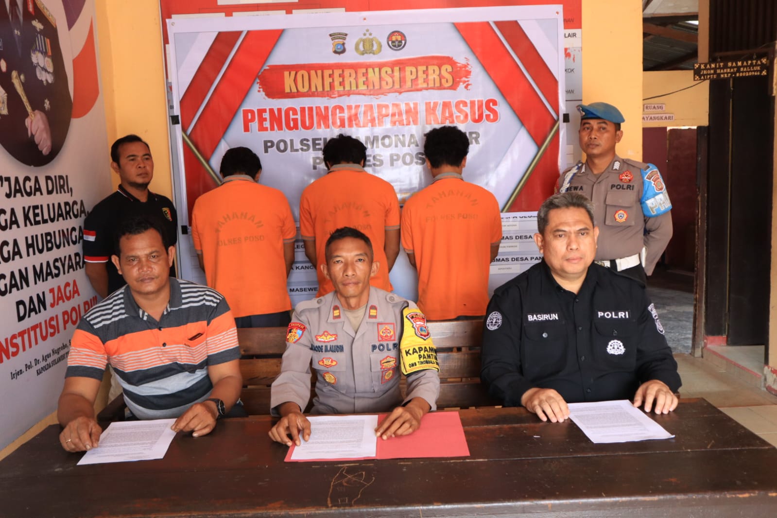 Konferensi pers tersebut diadakan setelah berhasilnya upaya penyelidikan dan pengembangan kasus oleh Kapolsek Pamona Timur IPTU La Ode Muhamad Aludin bersama anggota Reskrim Polsek Pamona Timur.