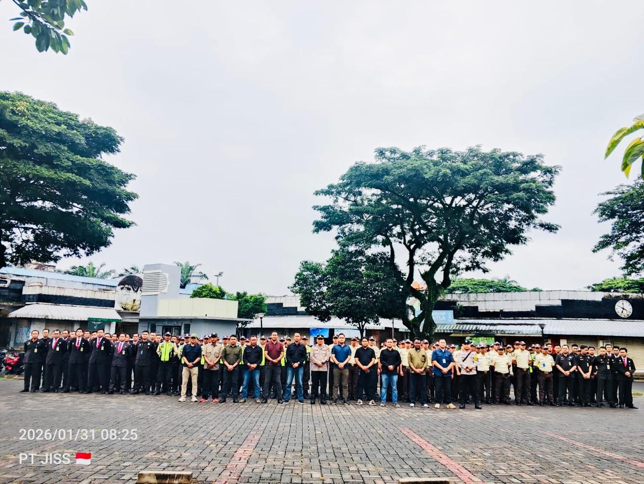 Apel pagi tersebut dilaksanakan pada pukul 08.00 WIB di Lapangan Parkiran Madrigrass Citra Raya, Kelurahan Mekar Bakti, dan diikuti sekitar 150 personel Security JISS dari berbagai jalur dan klaster pengamanan.