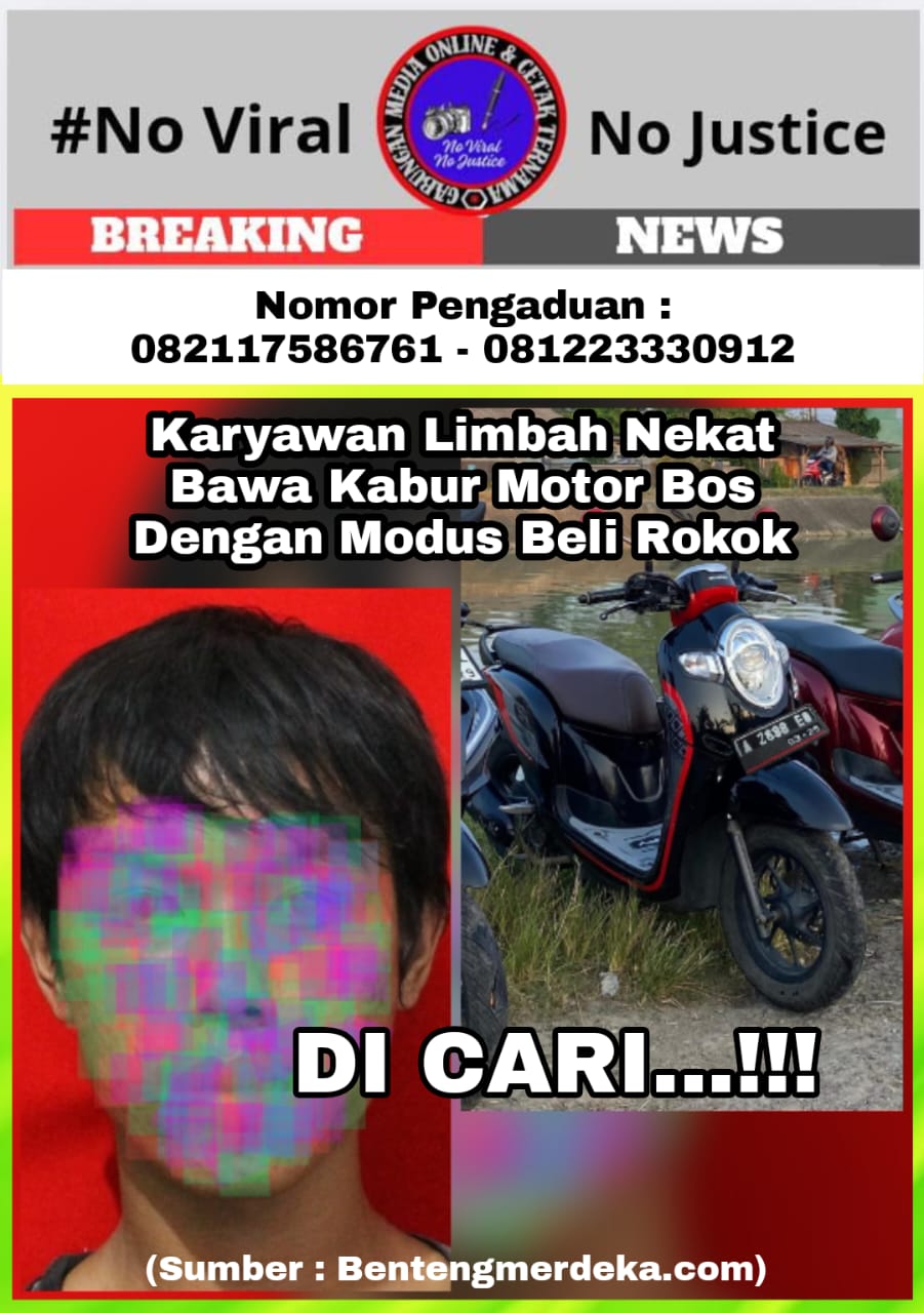 Eksposelensa.com – Serang, Banten – Seorang karyawan Limbah berinisial DN, warga Tambak Pasir, Kecamatan Kibin, Kabupaten Serang, tega membawa kabur sepeda motor milik bosnya sendiri, Nono, warga Desa Blokang, Kecamatan Banding. Peristiwa ini terjadi pada Kamis (2/10/2025).