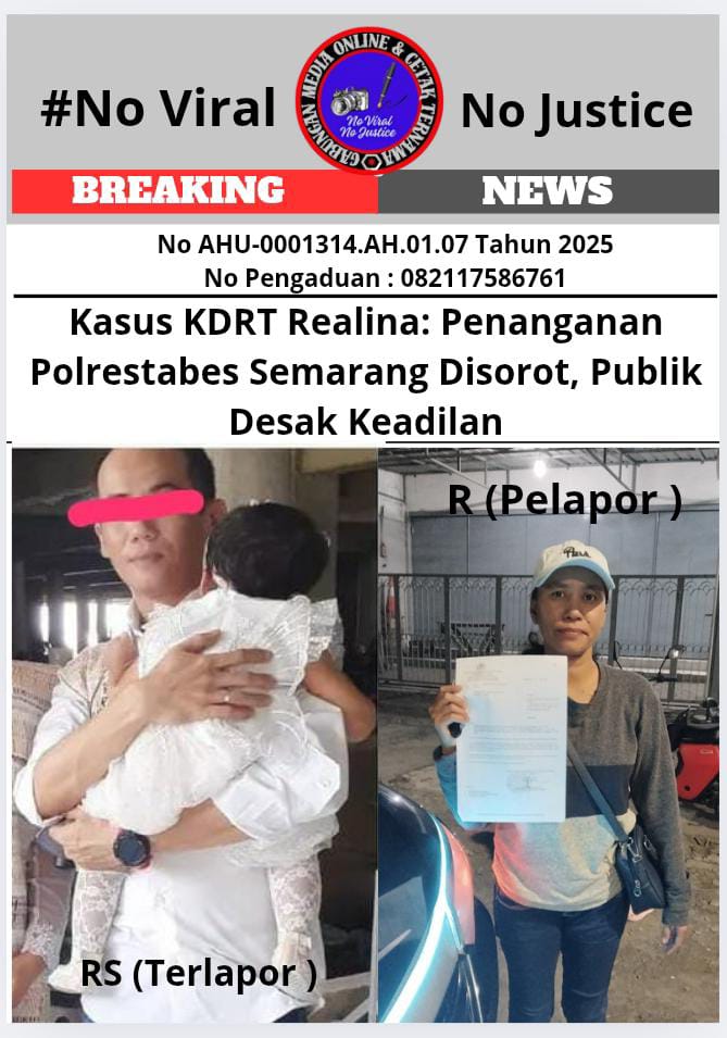 Eksposelensa.com – Semarang (GMOCT) 22 Agustus 2025 – Kasus dugaan Kekerasan Dalam Rumah Tangga (KDRT) yang menimpa Realina Roberta Butar Butar (37), warga Palebon, Pedurungan, Kota Semarang, memicu gelombang kritik. Pasalnya, laporan resmi yang disampaikan sejak 21 Juli 2025 di Unit PPA Satreskrim Polrestabes Semarang dinilai berjalan lamban dan tak kunjung menunjukkan perkembangan signifikan.