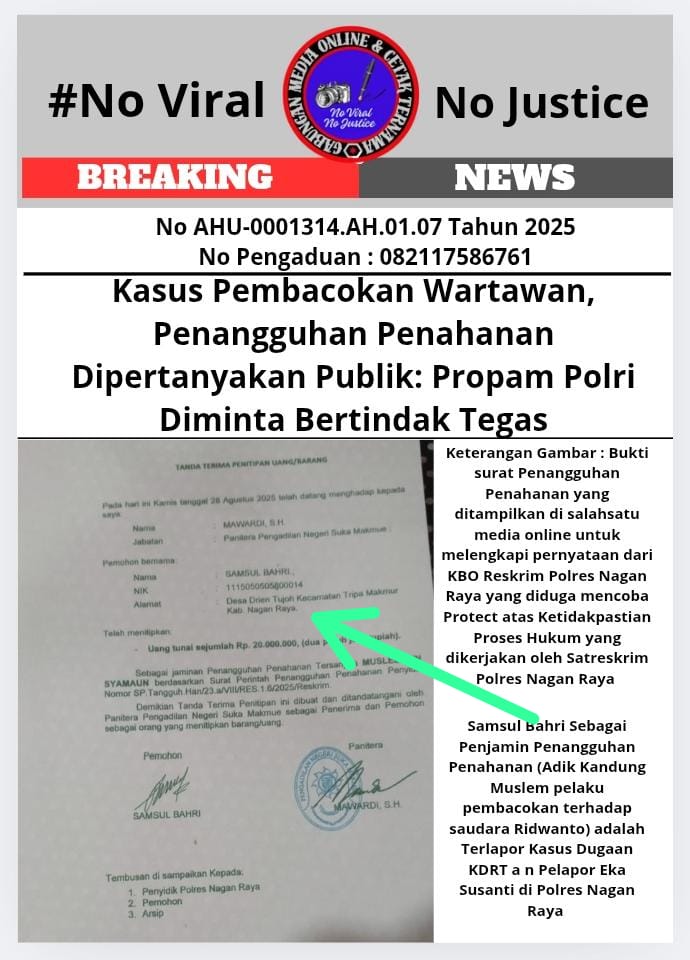 Ekposelensa.com – Nagan Raya 20 September 2025 (GMOCT) – Polemik penangguhan penahanan tersangka kasus pembacokan wartawan terus menjadi sorotan publik. Meskipun secara hukum penangguhan penahanan diperbolehkan sesuai KUHAP Pasal 31, namun keputusan tersebut dinilai mencederai rasa keadilan masyarakat, mengingat kasus yang menimpa wartawan ini tergolong tindak kekerasan berat.