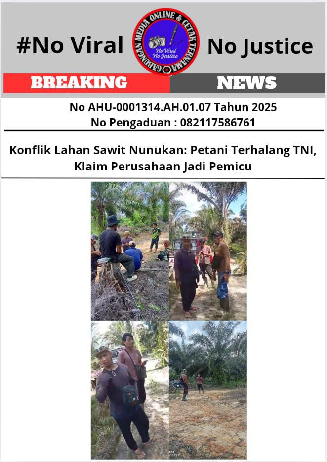 Eksposelensa.com – Nunukan, 15 April 2025 – GMOCT Gabungan Media Online dan Cetak Ternama mendapatkan informasi dari media online Kabarsbi yang tergabung di dalamnya perihal Konflik lahan perkebunan kelapa sawit kembali memanas di Nunukan. Kelompok Tani Maju Taka 1 di Inti II Perum Seimanggaris menghadapi kendala serius dalam mengakses lahan mereka, setelah dihadang oleh anggota TNI dari KOREM 092 Tanjung Selor dan Kodim 0911 Nunukan. Kehadiran Zainuddin, Direktur PT Tunas Mandiri Lumbis (PT TML), yang mengklaim kepemilikan lahan tersebut semakin memperkeruh situasi.