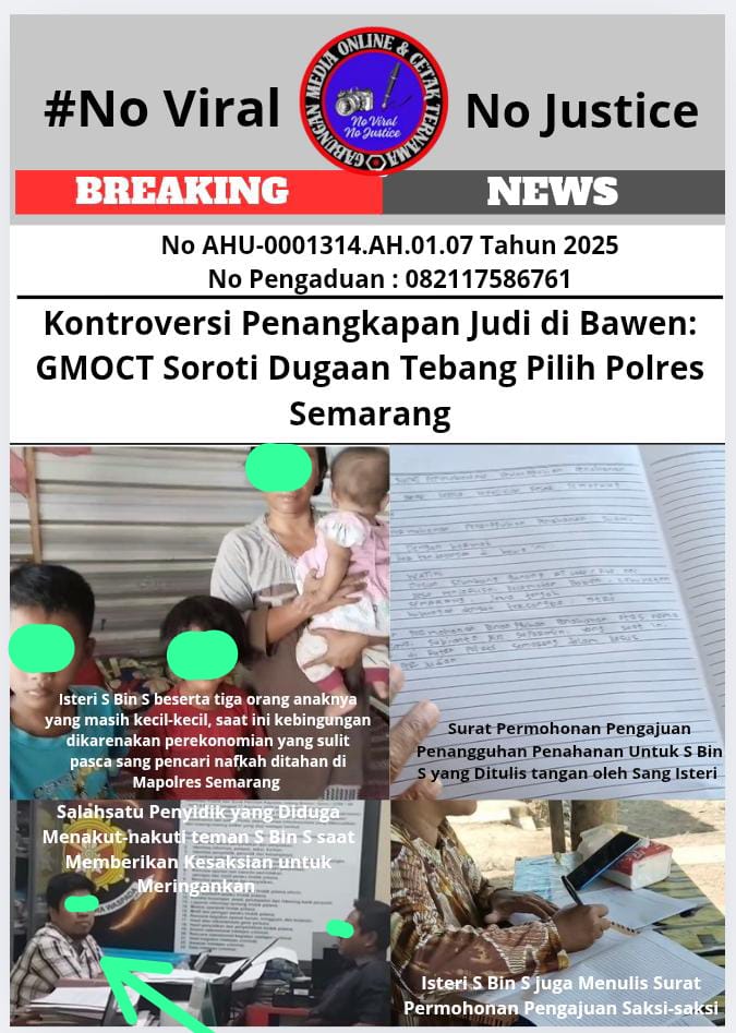 Kontroversi Penangkapan Judi di Bawen: GMOCT Soroti Dugaan Tebang Pilih Polres Semarang