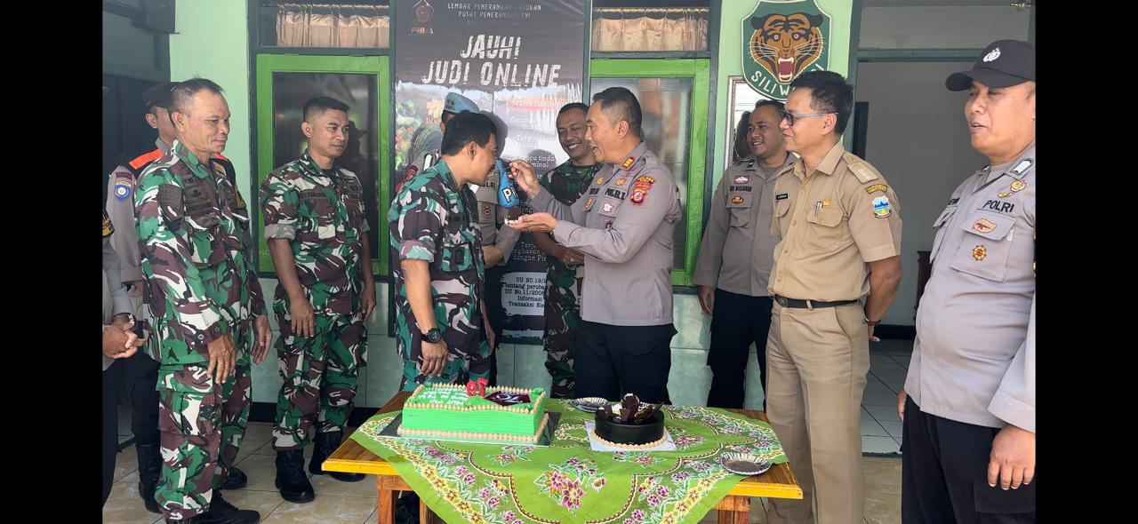 Eksposelensa.com | Garut – Dalam rangka merayakan Hari Ulang Tahun Tentara Nasional Indonesia (TNI) yang ke-79 Polsek Banyuresmi memberikan ucapan selamat dan kue ulang tahun kepada Danramil 1112 Banyuresmi dan anggotanya.
