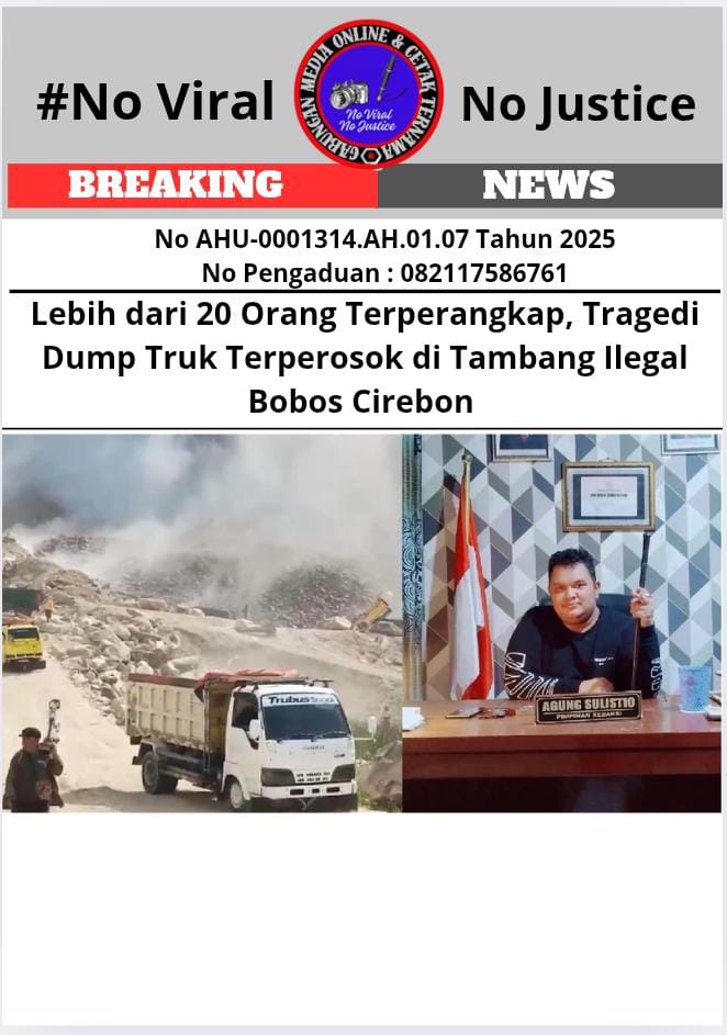 Eksposelensa.com – Cirebon, 30 Mei 2025 (GMOCT) – Kecelakaan kerja mengerikan terjadi di lokasi galian C ilegal di wilayah Bobos, cirebon, Jawa Barat. Lebih dari sepuluh dump truk terperosok ke dalam kubangan bekas galian tambang batu kapur setelah salat Jumat. Akibatnya, lebih dari 20 orang terjebak dan seorang pekerja tambang meninggal dunia di lokasi kejadian. Tragedi ini menyoroti maraknya aktivitas tambang ilegal yang tak hanya merusak lingkungan, tetapi juga mengancam nyawa manusia.