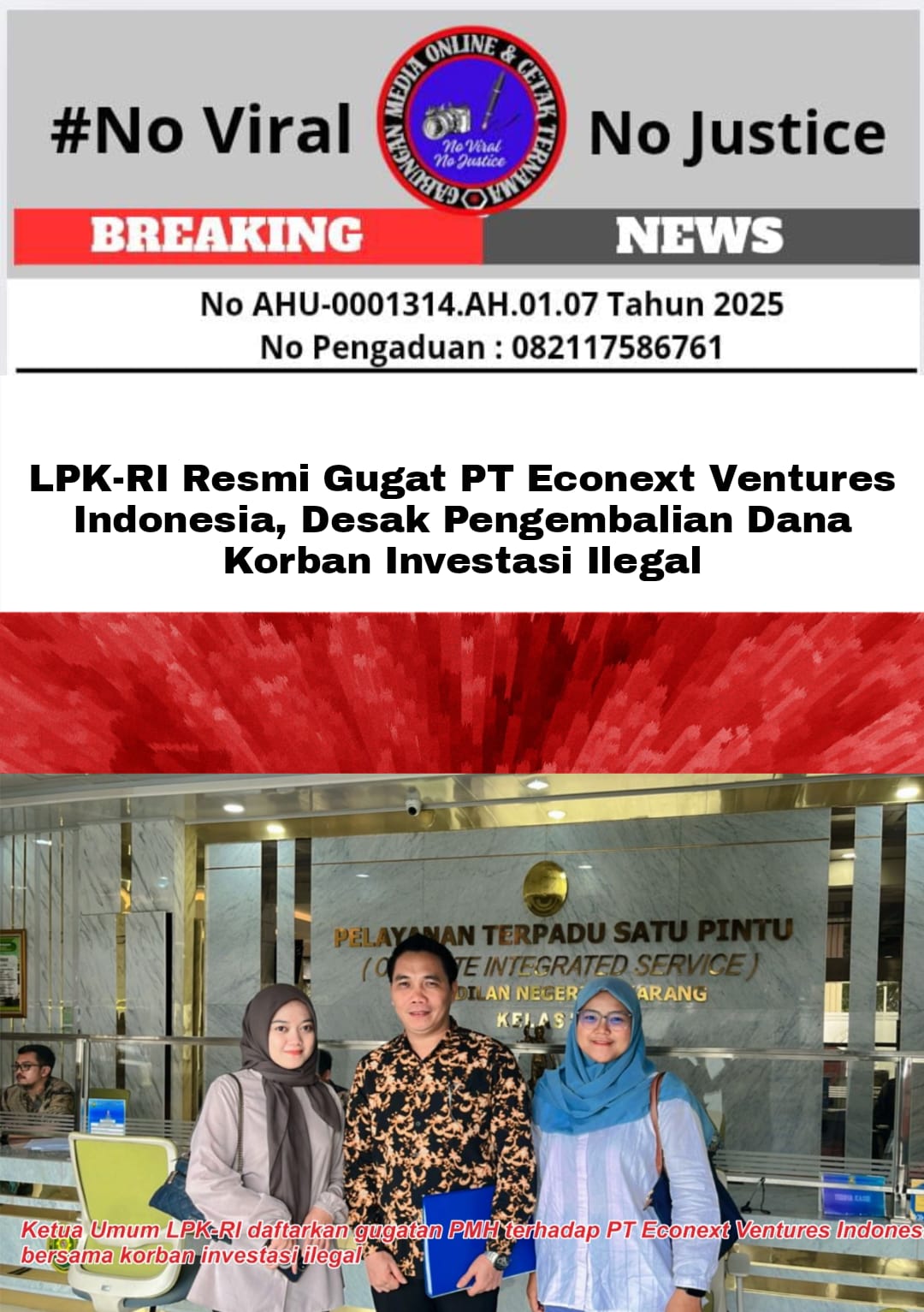 LPK-RI Resmi Gugat PT Econext Ventures Indonesia, Desak Pengembalian Dana Korban Investasi Ilegal