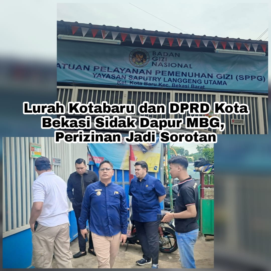 Eksposelensa.com – Kota Bekasi, 3 Oktober 2025 – Menyusul insiden dugaan keracunan yang dialami sejumlah siswa SDN Kotabaru 3 pada hari Kamis (2 Oktober 2025), Lurah Kotabaru, Agus H Mamun, S.Sos.i, N.Lp, bersama anggota DPRD Kota Bekasi melakukan inspeksi mendadak (sidak) ke dapur penyedia program Makan Bergizi Gratis (MBG) di Jl. Regency, Kotabaru, Bekasi Barat, kemarin. Sidak ini bertujuan untuk memastikan standar keamanan dan perizinan dapur MBG terpenuhi.