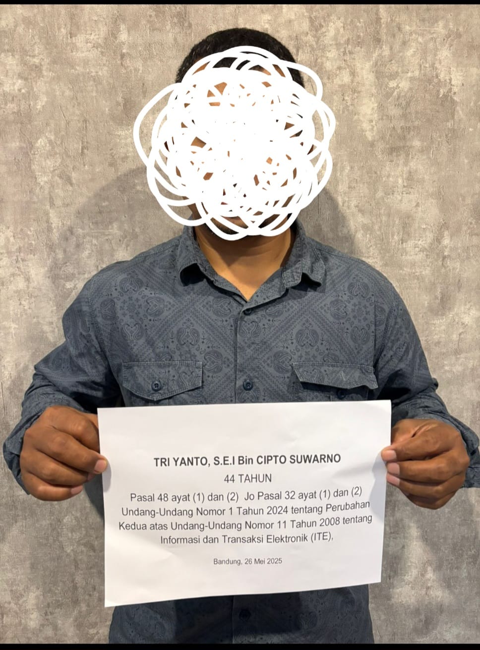 Atas perbuatannya, T Y, S.E.I. dijerat dengan Pasal 48 ayat (1) Jo Pasal 32 ayat (1) dan (2) Undang-Undang Republik Indonesia Nomor 1 Tahun 2024 tentang Perubahan Kedua atas UU RI Nomor 11 Tahun 2008 tentang Informasi dan Transaksi Elektronik. Polda Jawa Barat menegaskan komitmennya dalam menindak tegas pelaku kejahatan siber, terlebih yang menyangkut penyalahgunaan data resmi dan informasi yang dikecualikan milik publik atau lembaga.