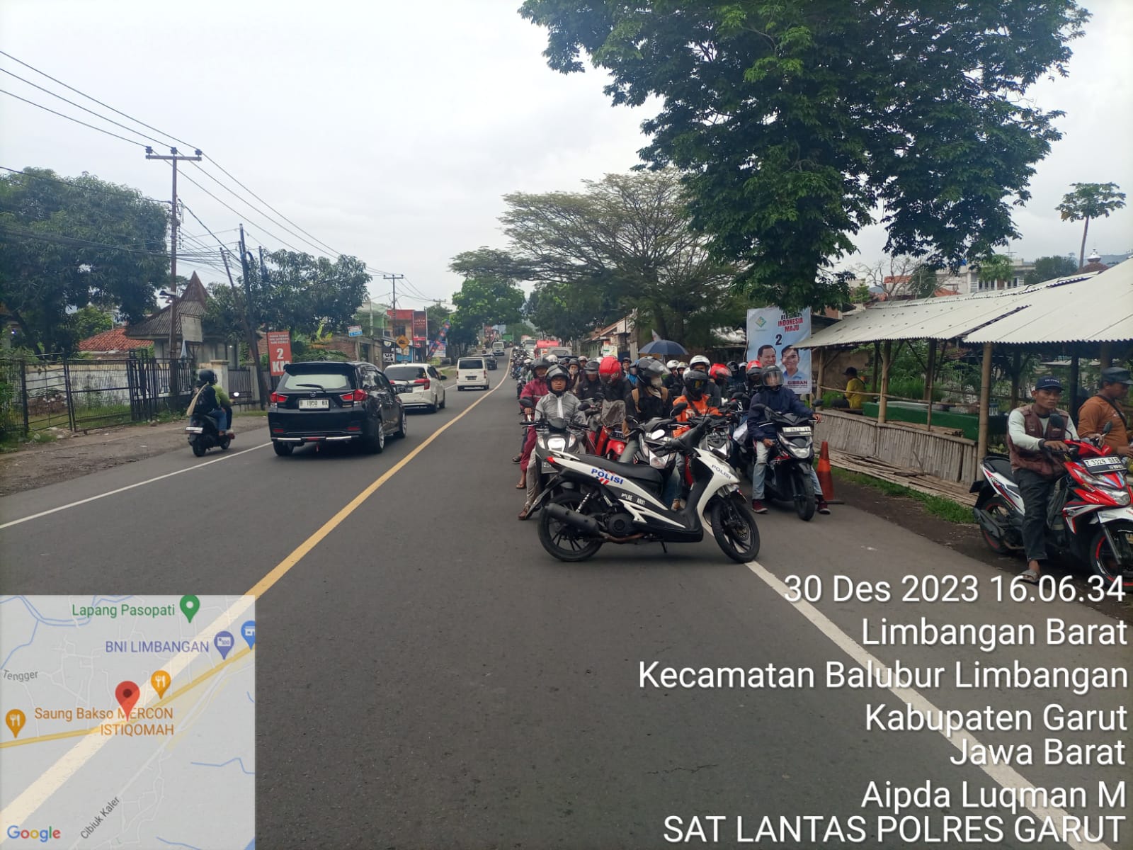 Demi memberikan kenyamanan dan keamanan bagi masyarakat Kapolres Garut AKBP Rohman Yonky Dilatha, S.I.K, M.Si, melalui Kasat Lantas Polres Garut Iptu Aang Andi Suhandi melakukan cara bertindak sistem one way/satu arah sepenggal di jalur Limbangan – Malangbong dan jalur Leles – Kadungora Kabupaten Garut. Sabtu (30/12/2023).