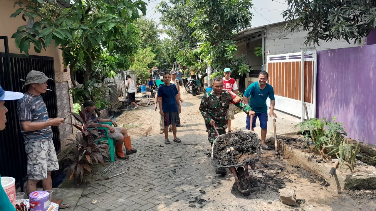 Eksposelensa.com – Kodam Jaya, Tigaraksa – Menyatu menjadi satu Babinsa bersama warga masyarakat melaksanakan kegiatan kerja bakti sosial membersihkan jalan dan selokan serta membersihkan halaman dilingkungan.