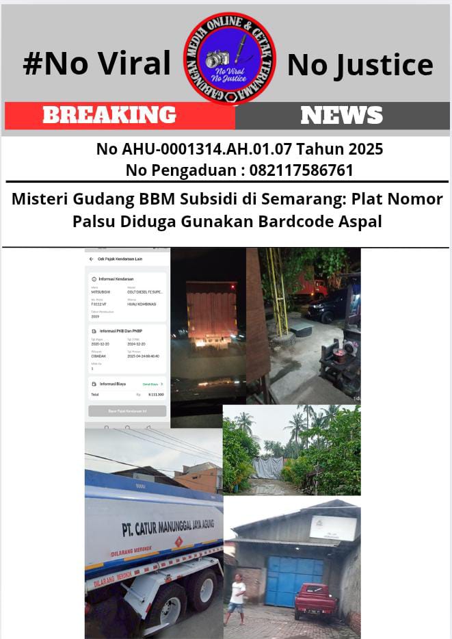 Eksposelensa.com. – Semarang, Jawa Tengah (GMOCT) Kamis 24 April 2025 – Berawal dari laporan warga dan pemberitaan di media online LidikKrimsus, tim liputan khusus GMOCT (Gabungan Media Online dan Cetak Ternama) melakukan investigasi langsung ke sebuah gudang yang diduga menjadi tempat penimbunan BBM solar bersubsidi di wilayah Bangunharjo, Kecamatan Genuk, Kota Semarang, pada Rabu, 23 April 2025 pukul 19.00 WIB.