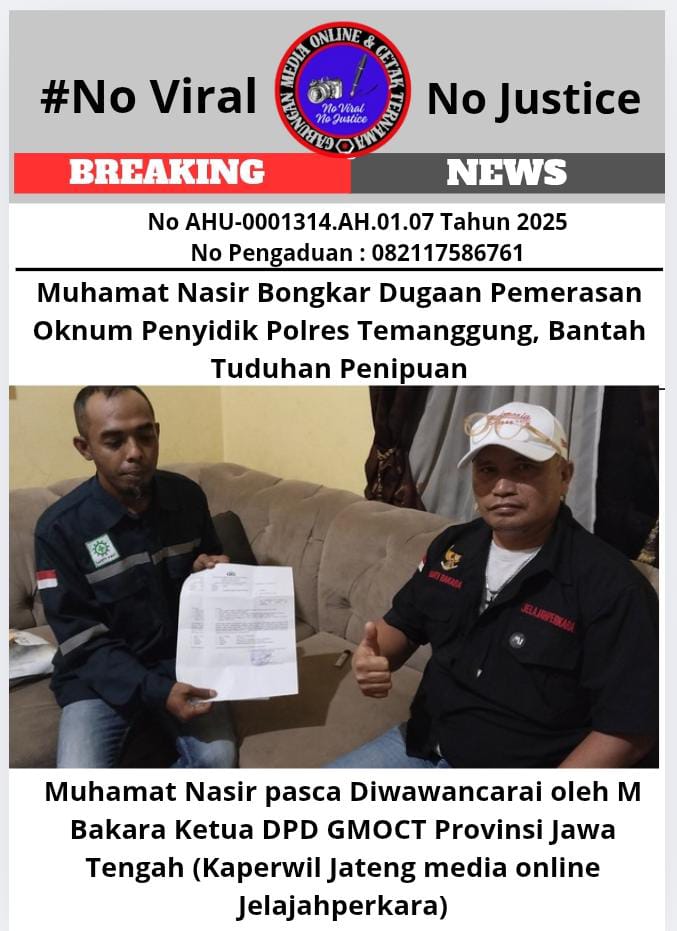 Eksposelensa.com – Temanggung (GMOCT) 7 Agustus 2025 – Muhamat Nasir, warga Jembangan, Dusun Sruwen, Tengaran, Kabupaten Semarang, dengan tegas membantah tuduhan penipuan yang dilayangkan oleh Nur Vairus Ilzami Kusnur Kotimah ke Polres Temanggung. Nasir menyatakan bahwa kasus ini seharusnya masuk ranah perdata karena berkaitan dengan utang-piutang usaha yang dikelola oleh temannya, Asep.