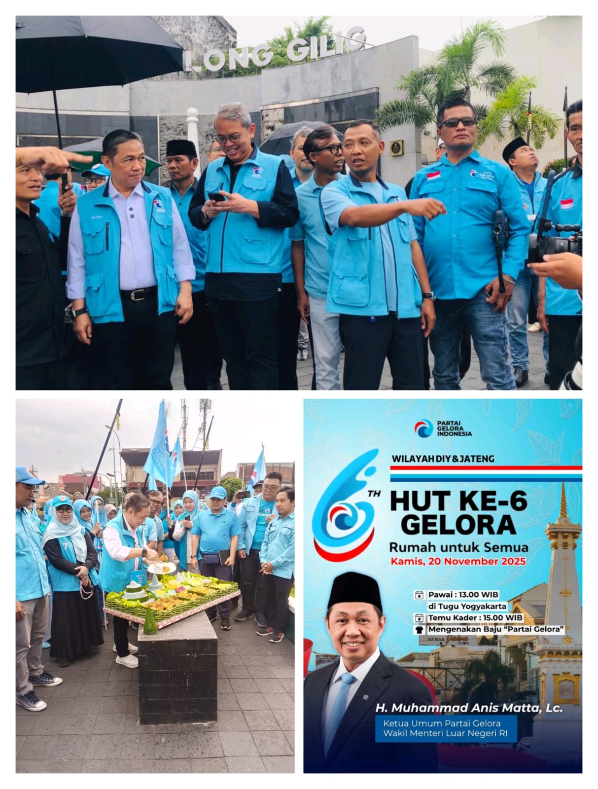 Eksposelensa.com – Yogyakarta – Partai Gelora Indonesia merayakan Hari Ulang Tahun (HUT) ke-6 dengan menggelar pawai di Tugu Yogyakarta pada Kamis, 20 November 2025. Acara ini dihadiri oleh kader dan simpatisan Partai Gelora dari wilayah DIY dan Jawa Tengah.