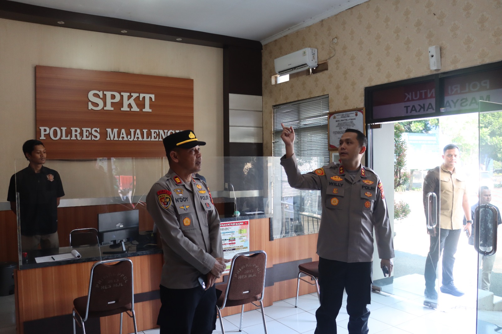 Eksposelensa.com – Majalengka, Kapolres Majalengka Polda Jabar AKBP Willy Andrian,S.H.,S.I.K.,M.H. melakukan pengecekan ruang pelayanan publik di kantor Sentra Pelayanan Kepolisian Terpadu atau SPKT, Kamis (1/5/2025).