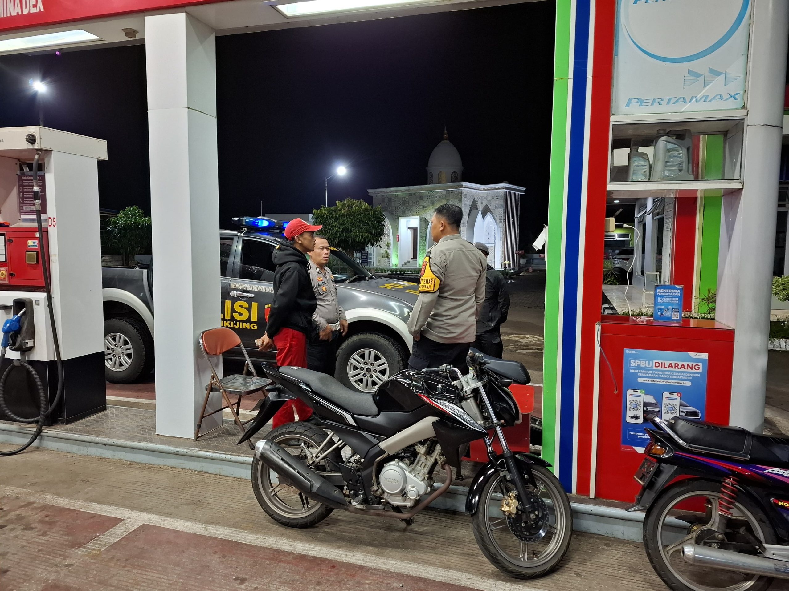 Patroli Malam, Personil Polsek Cikijing Pantau Situasi Kamtibmas di Area SPBU