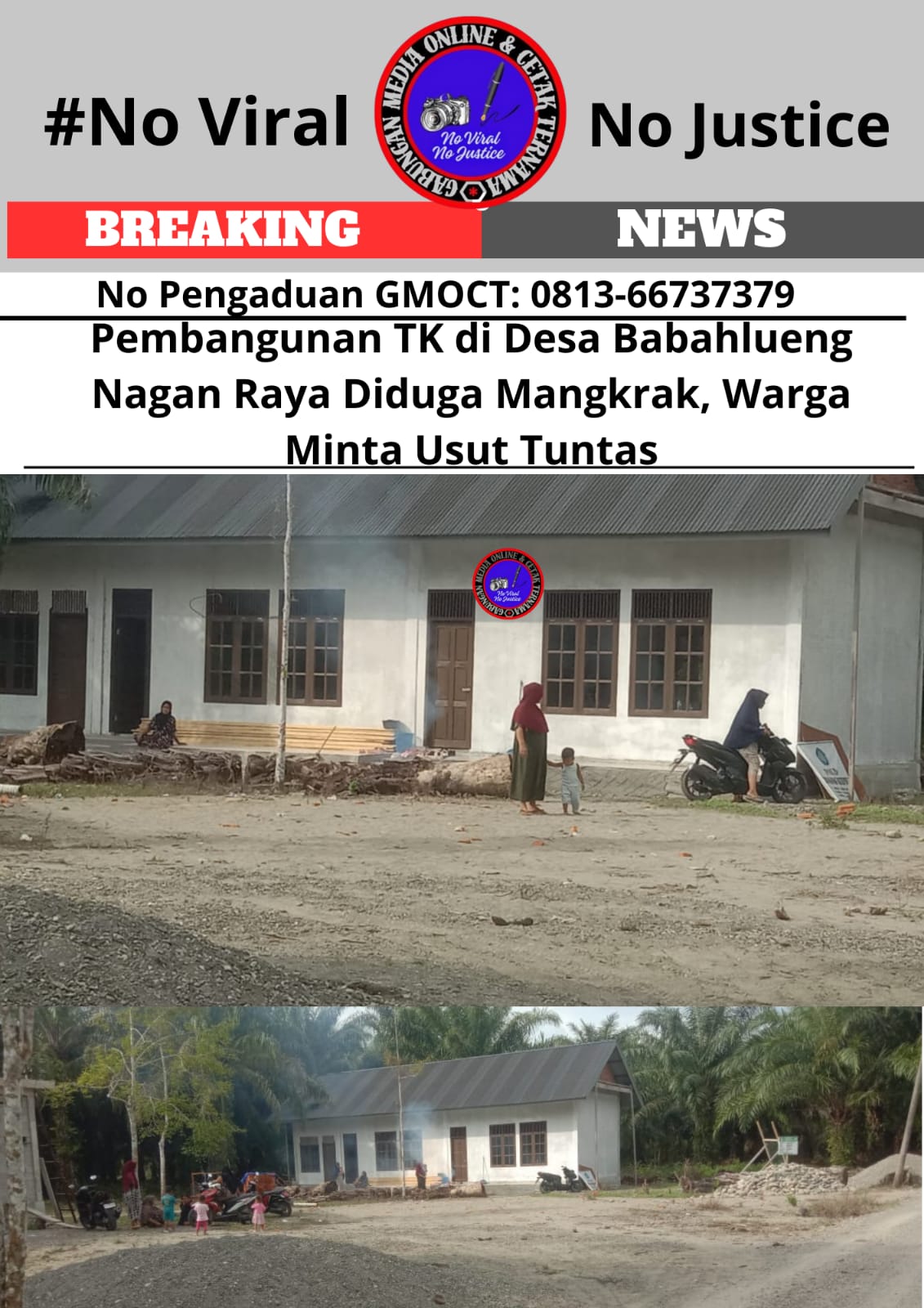 Eksposelensa.com – Nagan Raya, Aceh – 5 Februari 2025 – Pembangunan Taman Kanak-Kanak (TK) di Desa Babahlueng, Kecamatan Darul Makmur, Kabupaten Nagan Raya, Aceh, dikeluhkan warga setempat karena diduga mangkrak bertahun-tahun. Beberapa warga yang enggan disebutkan namanya mengungkapkan kecurigaan adanya penyimpangan dalam pengelolaan dana pembangunan tersebut. Informasi ini diperoleh Gabungan Media Online dan Cetak Ternama (GMOCT) dari media online Bongkarperkara, yang tergabung dalam GMOCT.