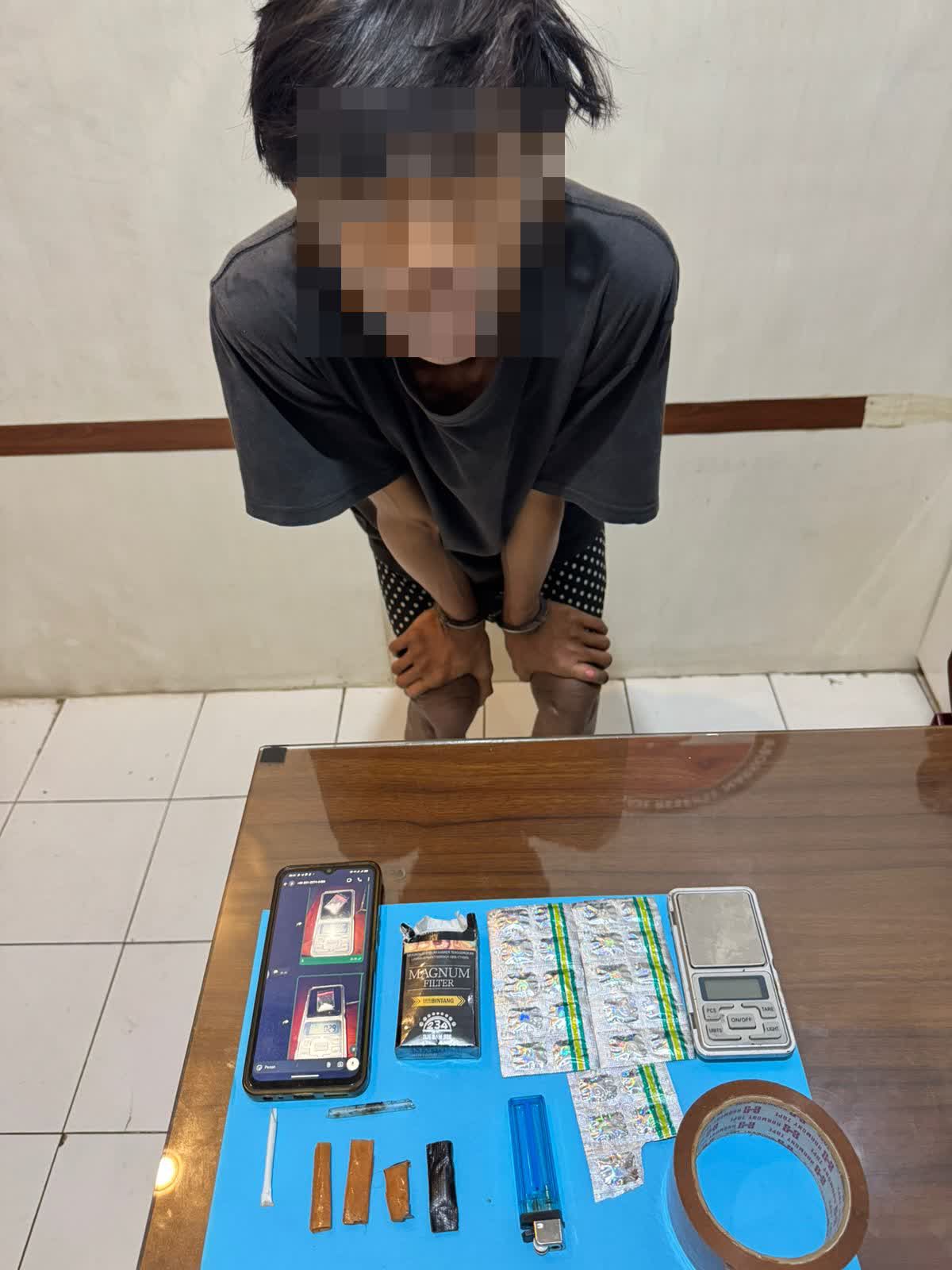 Plt. Kasubbid Penmas Kompol Nurul mengatakan bahwa Dari hasil penggeledahan, petugas menemukan empat paket sabu yang dibungkus plastik klip bening dan dilapis lakban, pil Tramadol, satu pipet kaca, satu korek api, timbangan digital, sedotan, bungkus rokok, serta satu unit ponsel warna biru.