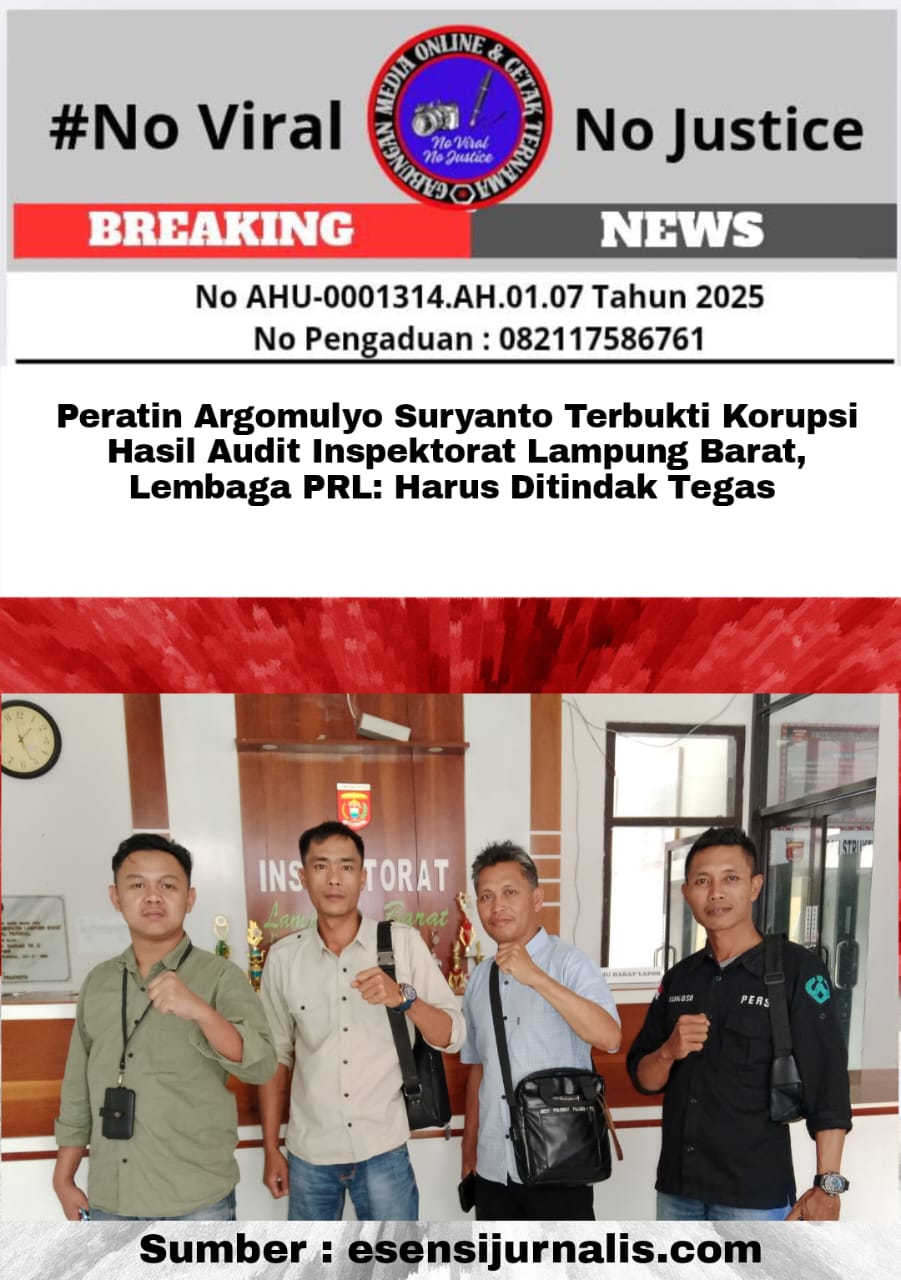 Eksposelensa.com – Lampung Barat – Dalam audit pemeriksaan akhirnya Inspektorat Kabupaten Lampung Barat menemukan adanya kerugian negara dalam pengelolaan Dana Desa (DD) di Pekon (Desa) Argomulyo, Kecamatan Batu Ketulis, Kabupaten Lampung Barat, Provinsi Lampung. Temuan itu merupakan hasil audit investigatif menindaklanjuti laporan LSM Pembinaan Rakyat Lampung (PRL) Kabupaten Lampung Barat.