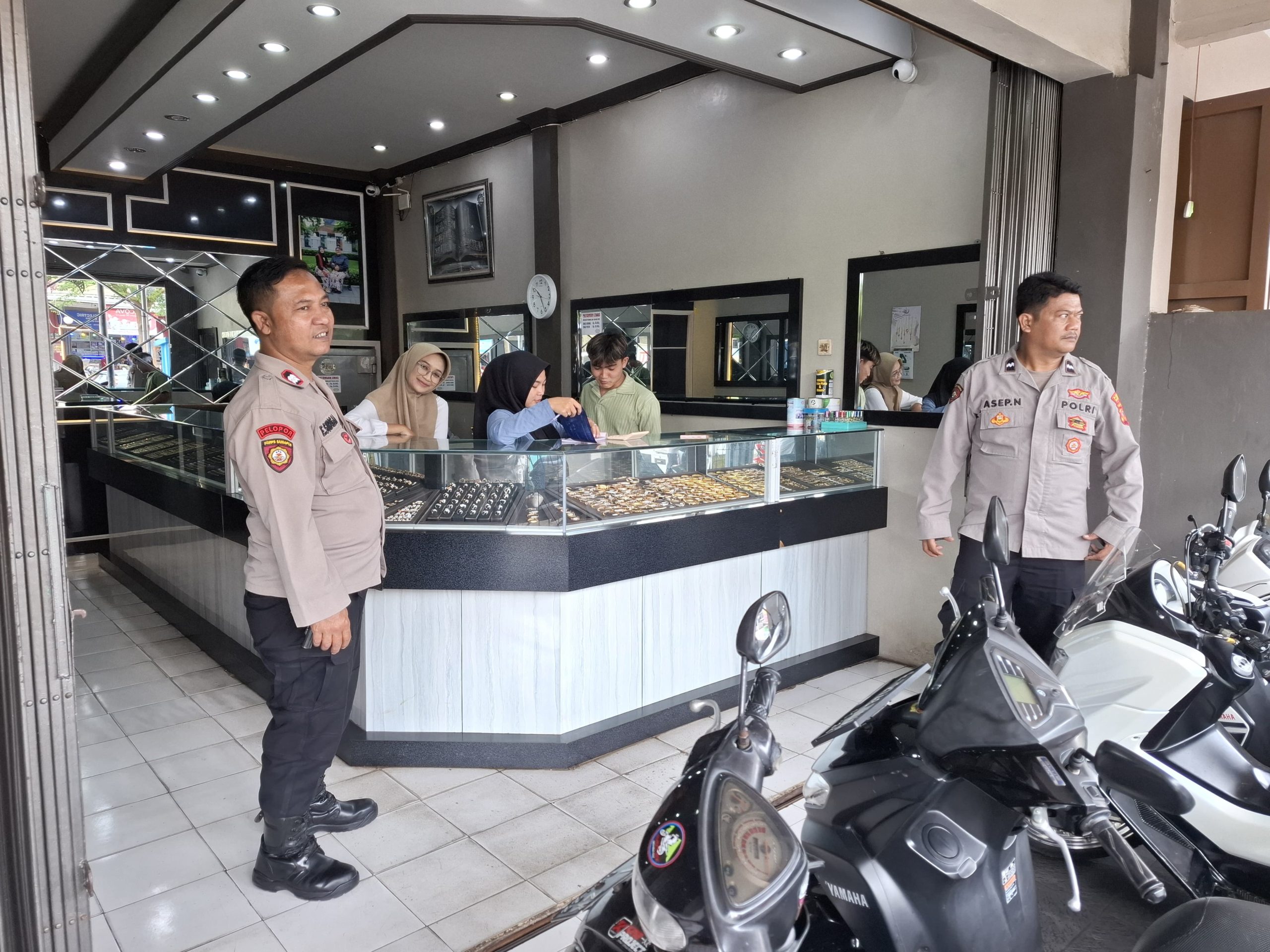 Eksposelensa.com – Majalengka – Untuk mengantisipasi tindak kejahatan serta untuk memberi rasa aman kepada pemilik toko emas maupun kepada pembeli, Polsek Cikijing Polres Majalengka Polda Jabar melalui Ps. Panit Samapta l Aiptu Eman Subagja bersama Ka SPKT I Aipda Asep Nugroho menyambangi Toko Emas Kartika 2 Cikijing, Rabu (05/03/2025).