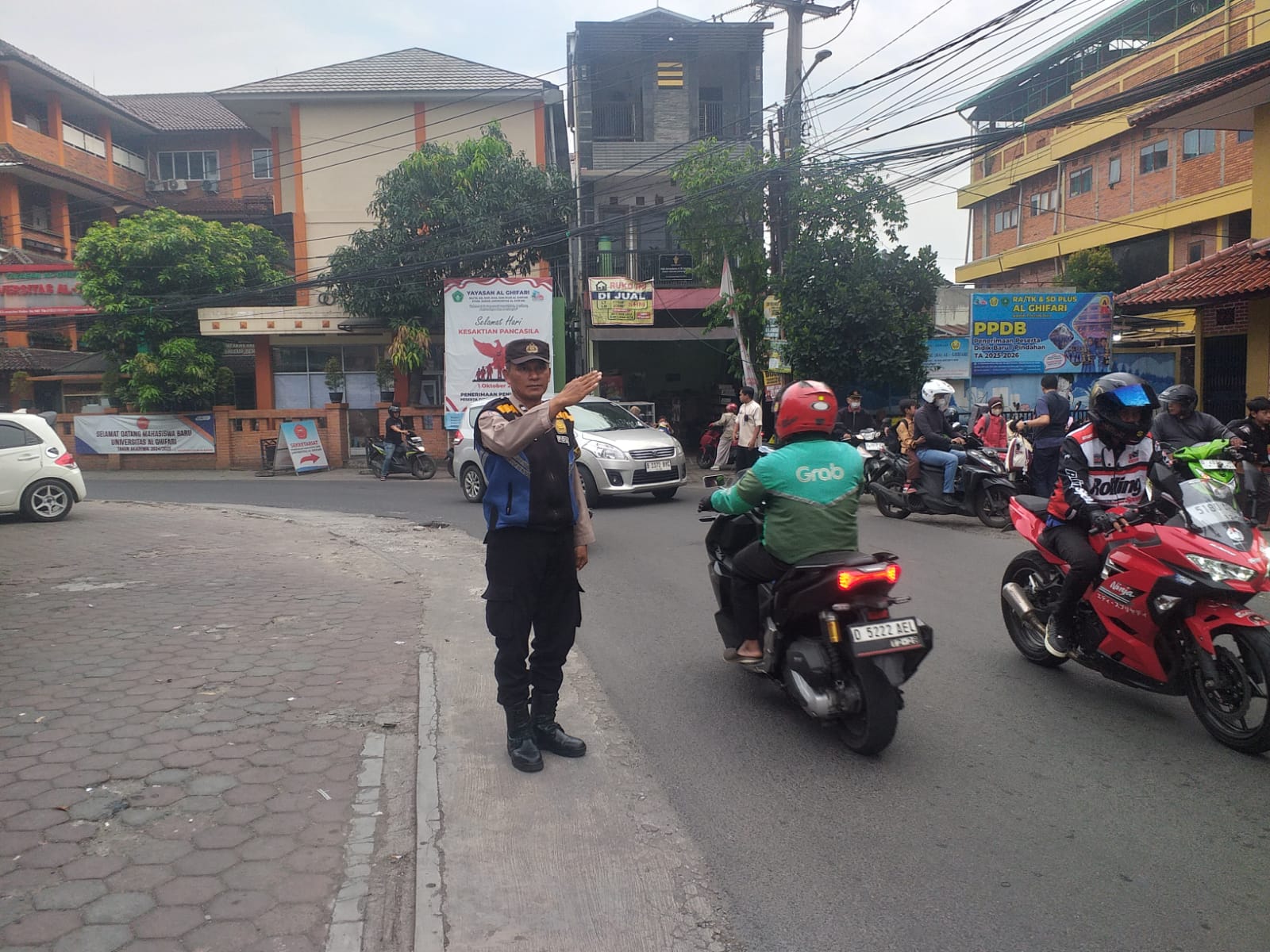 Personil Unit Binmas Polsek Arcamanik Lakukan Giat Pengaturan Arus Lalulintas pagi Hari
