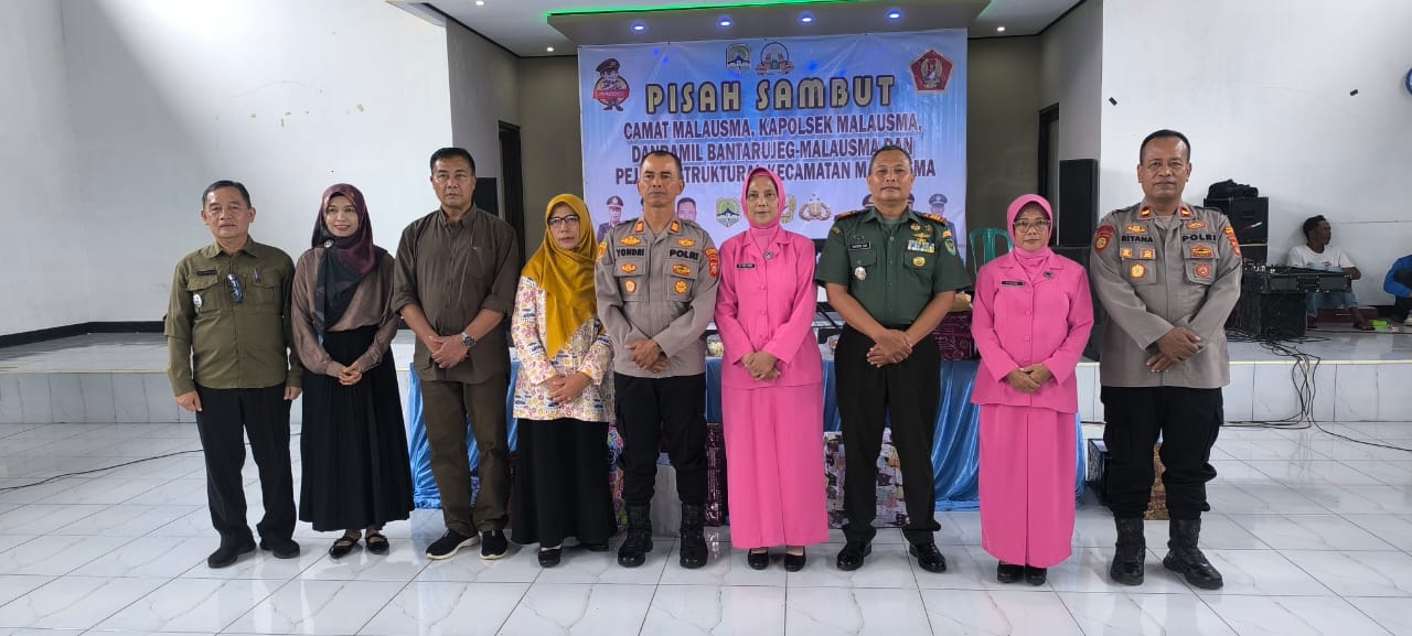 Acara pisah sambut di hadiri Camat Malausma lama Sdr. Drs. Ali Nurjaman dan Camat Baru Sdr. Dede Hakimurosad, S.P,. M.Si, Danramil 1706 Bantarujeg / Malausma Kapten Inf. Baderi, Kapolsek Malausma lama AKP Yondri, S.Sos.,M.H Kapolsek Baru IPDA Riyana, S.Sos, Sekcam Malausma Sdr. Agus Yudy Rusdiana, S.Sos., M.Si,. berikut staf Kecamatan.