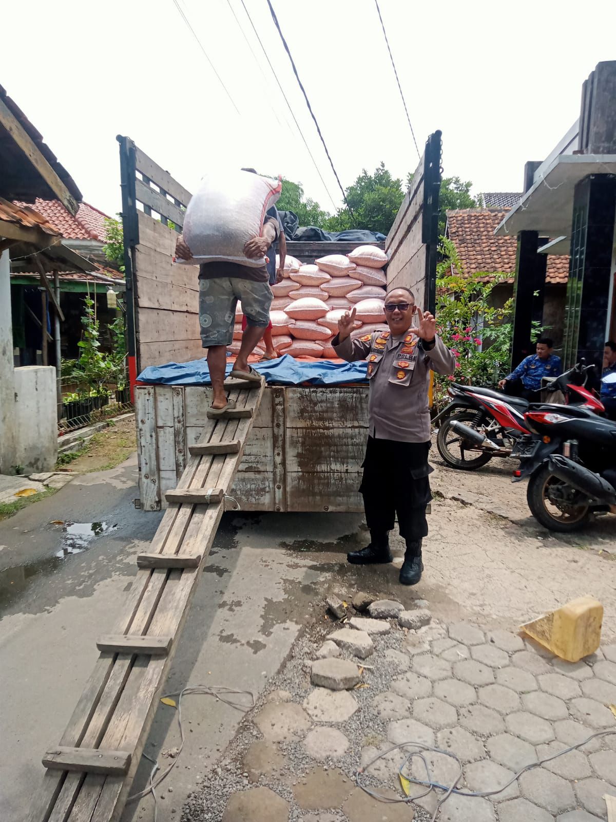Kapolsek Tomo, AKP Baban Kusbandi, hadir langsung dalam kegiatan tersebut bersama petugas Bulog serta Ketua Kelompok Tani Rimba Mulya, Endi, beserta anggota kelompoknya.