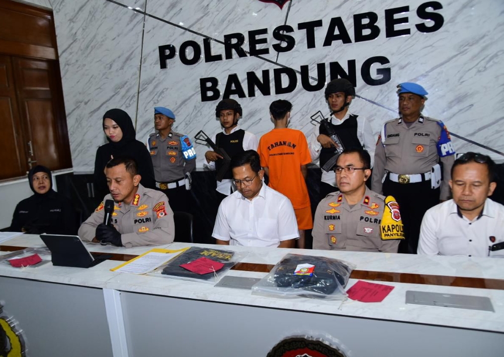 Eksposelensa.com – Polrestabes Bandung melalui Kapolrestabes Bandung, Kombes Pol. Dr. Budi Sartono, S.I.K., M.Si., M.Han., didampingi Kasat Reskrim Polrestabes Bandung dan Kapolsek Panyileukan, menggelar press release terkait pengungkapan kasus yang menyebabkan hilangnya nyawa seorang pelajar SMK di wilayah Cibiru, Kota Bandung, Jumat malam, 1 Agustus 2025.