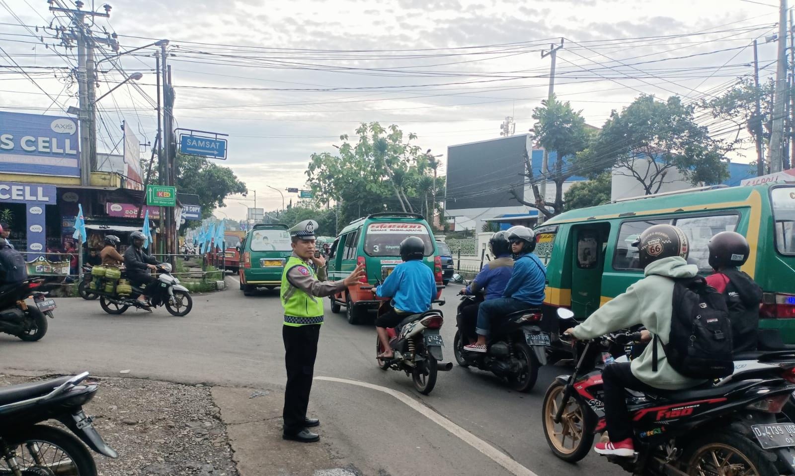 Selama pemantauan terlihat lalulintas cukup ramai, anggota Sat Lantas Polres Cimahi tetap disiagakan guna melakukan pemantauan dan pengaturan terhadap Prioritas pengguna jalan , Selasa (24/01/2024).