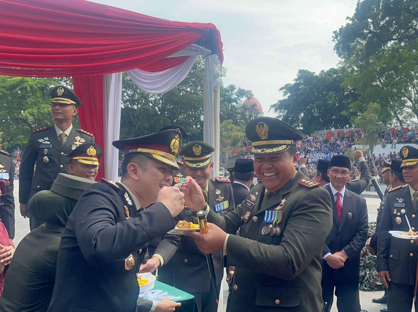 Potong Tumpeng dan Kue menjadi simbol Persatuan antara TNI dan Polri dalam menjaga keutuhan Negara Kesatuan Republik Indonesia.
