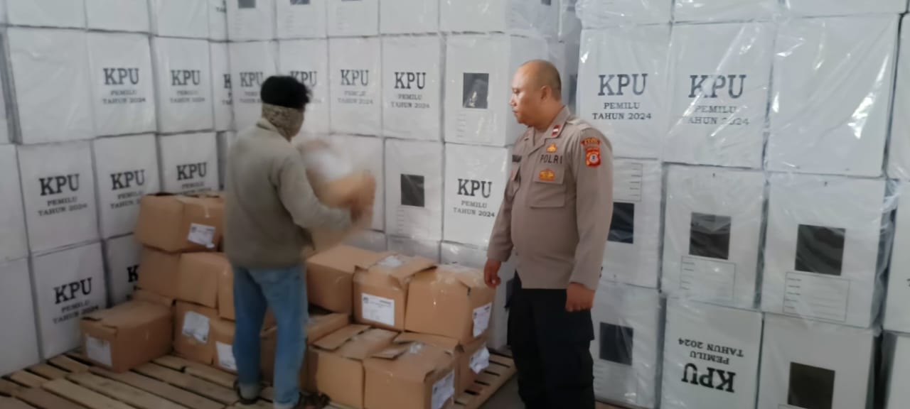 Dalam memastikan keamanan pelipatan suara ini di terjunkan belasan Personel untuk memperketat keamanan di sekitar lokasi Gudang KPU jalan Guntur Cendana. Kamis (4/1/2024),