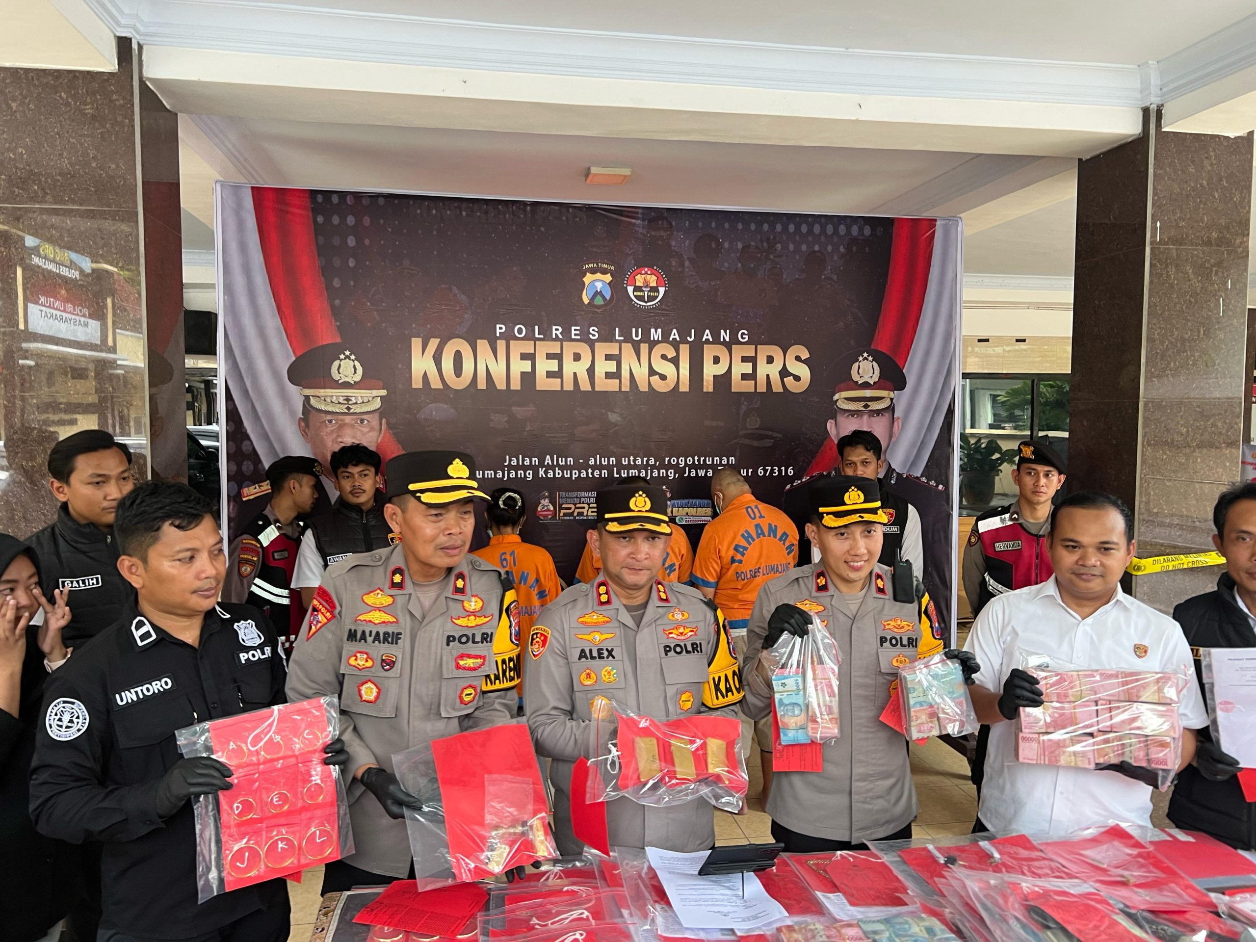 Kapolres Lumajang AKBP Alex Sandy Siregar dalam konferensi pers yang digelar di Lobi Mapolres Lumajang, Senin (24/3/2025), mengungkapkan bahwa kasus ini merupakan hasil penyelidikan intensif yang dilakukan setelah korban, Leo Tanoyo (71), melaporkan kehilangan emas miliknya yang disimpan di lemari dan laci rumahnya di Jalan Mahakam, Kelurahan Jogotrunan, Kecamatan Lumajang.