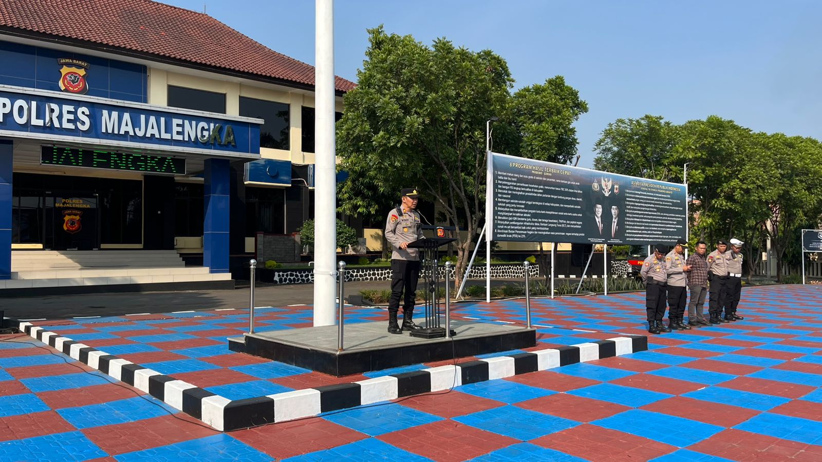 Apel dipimpin oleh Kabag Ops Polres Majalengka, AKP Endoy Sahru Ramadhan, S.Sos. yang mewakili Kapolres Majalengka AKBP Willy Andrian, S.H., S.I.K., M.H. Apel diikuti oleh personel dari berbagai satuan fungsi, termasuk Sabhara, Lalu Lintas, Intelkam, dan Polsek jajaran yang dilibatkan dalam pengamanan kegiatan.