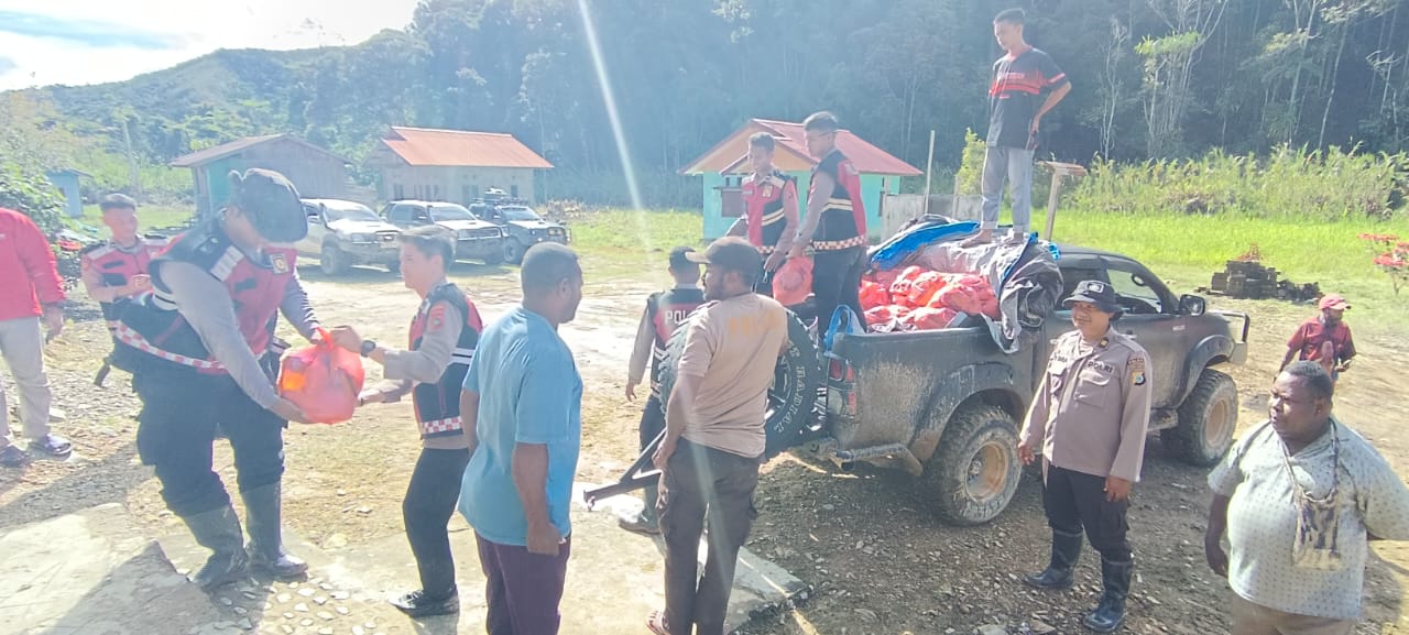 Polres Pegunungan Arfak Salurkan Bantuan Sembako kepada Warga Terdampak Longsor di Kampung Jim