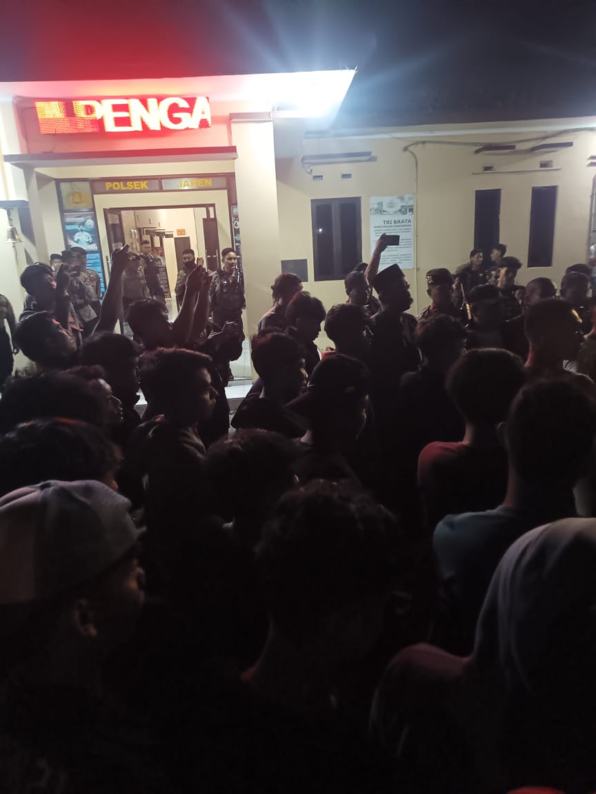 Eksposelensa.com – PATI – Puluhan warga Desa Sriwedari, Kecamatan Jaken, mendatangi Mapolsek Jaken pada Selasa malam (14/10/2025) untuk menanyakan perkembangan penanganan kasus penganiayaan yang terjadi pada 4 Oktober 2025 lalu. Aksi spontanitas yang berlangsung sejak pukul 20.00 hingga 23.00 WIB itu diikuti sekitar 50 orang warga, dipimpin koordinator lapangan Ahmad Sunardi dan Sunardi alias Gace.