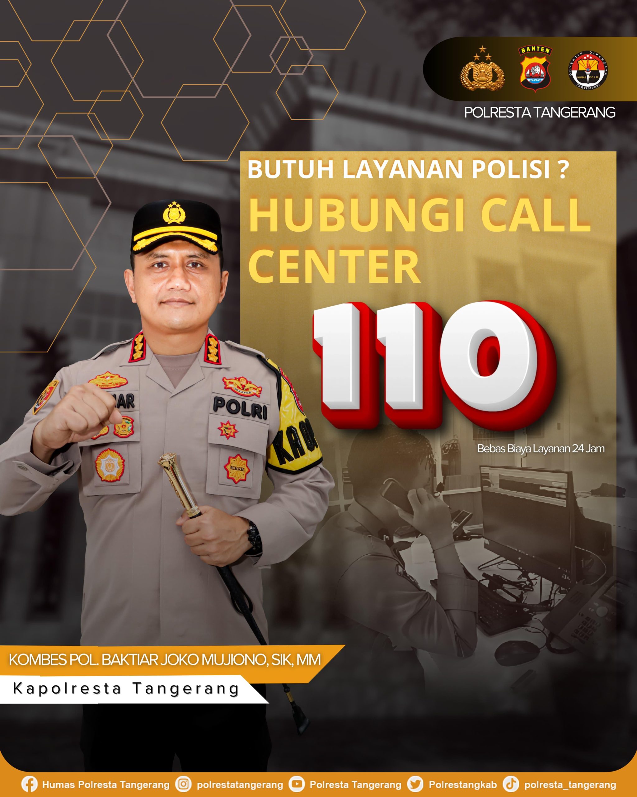 “Polresta Tangerang siap siaga 24 jam. Melalui layanan 110, masyarakat bisa langsung terhubung dengan petugas untuk mendapatkan respon cepat dan penanganan awal,” ujar Kombes Pol Baktiar Joko Mujiono.