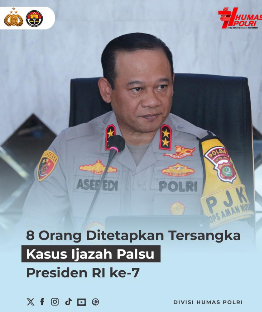 Polri Tetapkan Delapan Tersangka Kasus Dugaan Fitnah dan Pencemaran Nama Baik Presiden ke-7 RI