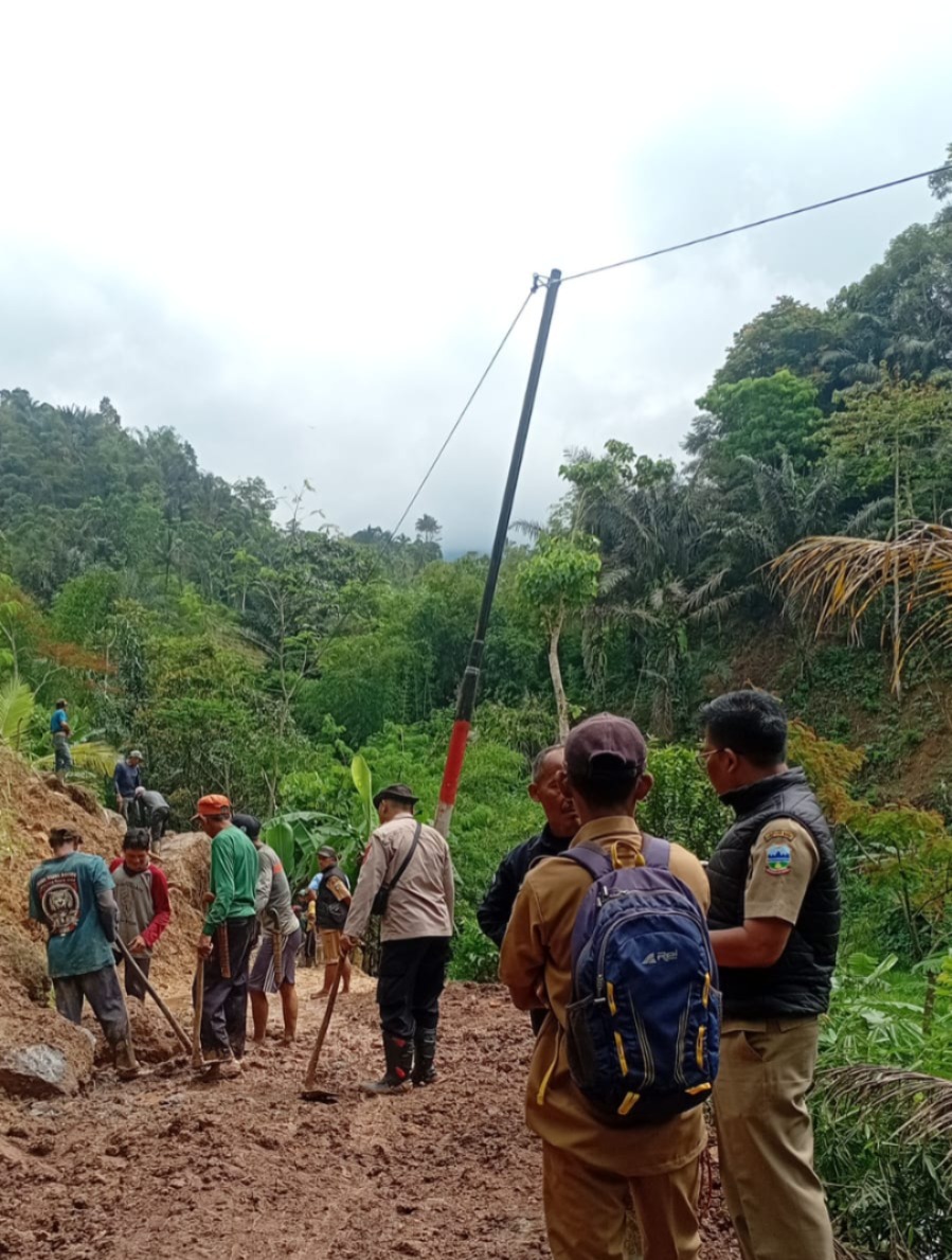 Kerja sama antara kepolisian, aparatur desa, dan masyarakat menunjukkan semangat gotong royong dalam menghadapi bencana alam di wilayah tersebut.