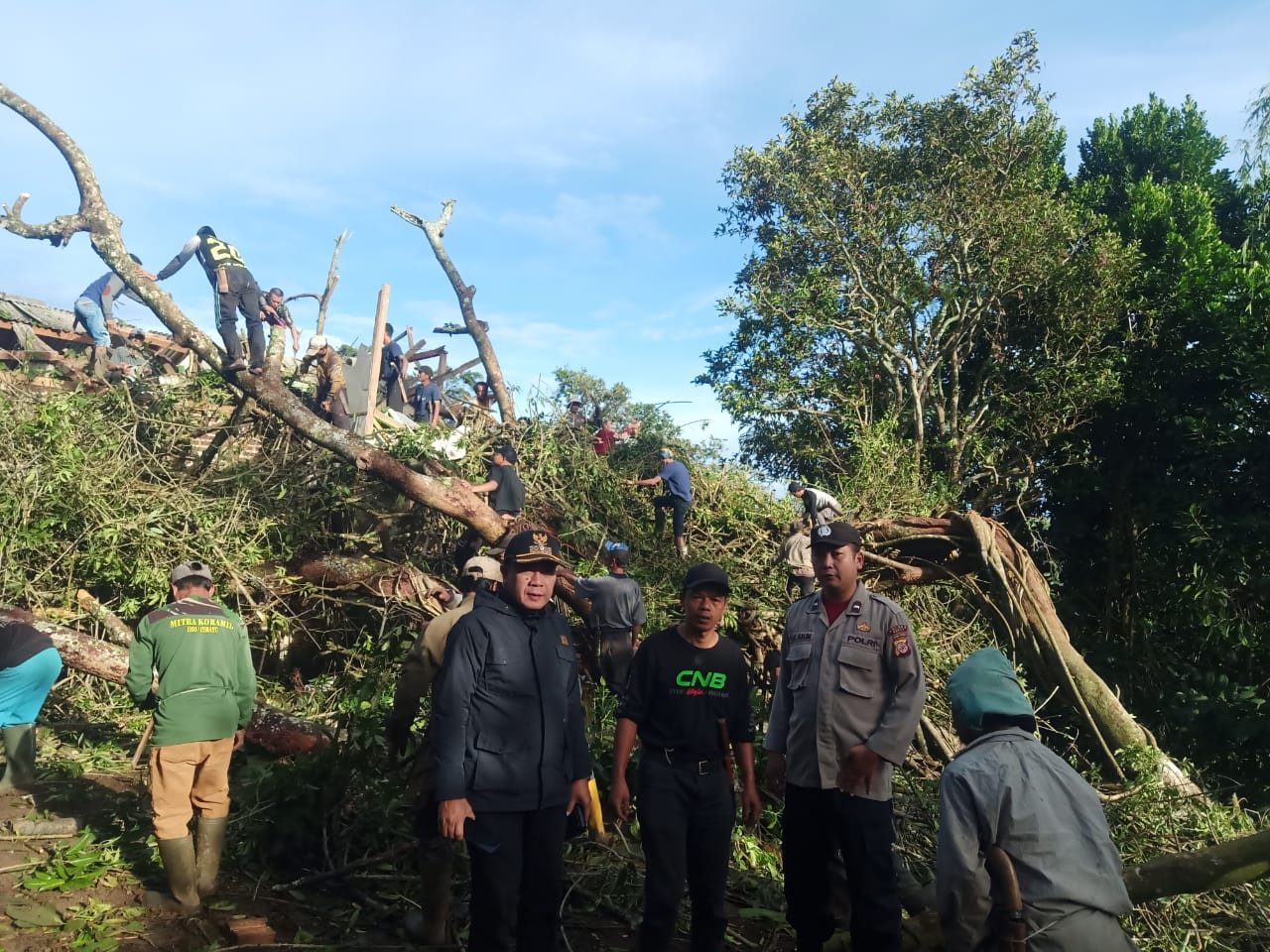 Polsek Cibatu Polres Garut yang menerima laporan kejadian tersebut langsung menuju lokasi dan olah TKP serta bersama warga sekitar bergotong royong membantu warga yang rumahnya tertimpa pohon kiara.