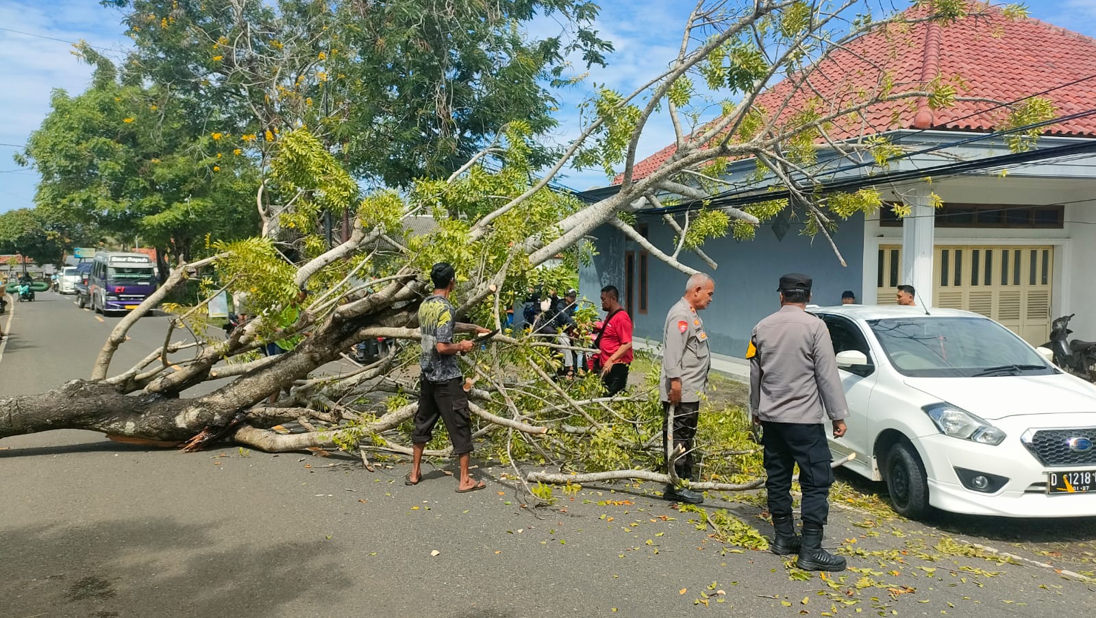 Pohon jenis Ketapang tersebut diduga tumbang akibat usia yang sudah tua dan lapuk, sehingga tidak mampu menahan beban batang saat diterpa angin. Akibat kejadian ini, arus lalu lintas sempat tersendat karena seluruh badan jalan tertutup oleh batang dan ranting pohon.