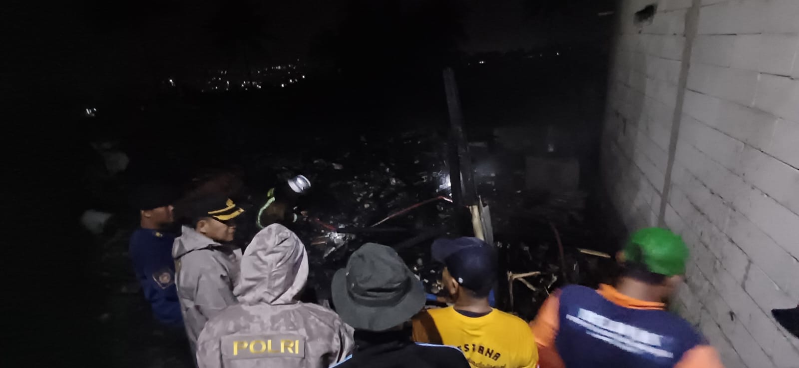 Setelah padam anggota Polsek Kadungora melakukan olah tkp dan menemukan jasad korban Ibu Ating hangus terbakar di ruangan dapur rumahnya.
