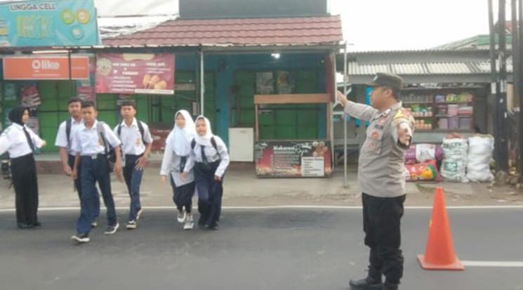 Selain mengatur arus kendaraan, Bripka Jojo juga terlihat membantu menyeberangkan pelajar dan warga sekitar, sebagai bentuk kepedulian Polri terhadap keselamatan masyarakat, terutama anak-anak sekolah.