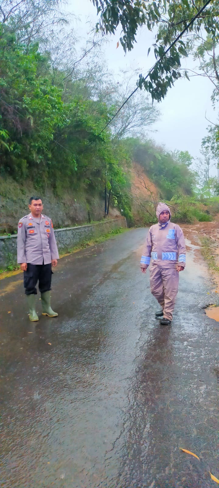 Eksposelensa.com | Garut – Polsek Pamulihan Polres Garut cek tkp kejadian tanah longsor di Jalan Raya Provinsi Pamulihan – Bungbulang yang tepatnya berada di blok Cijotang Desa Pananjung Kecamatan Pamulihan Kabupaten Garut. Kamis sore (11/01/2024).
