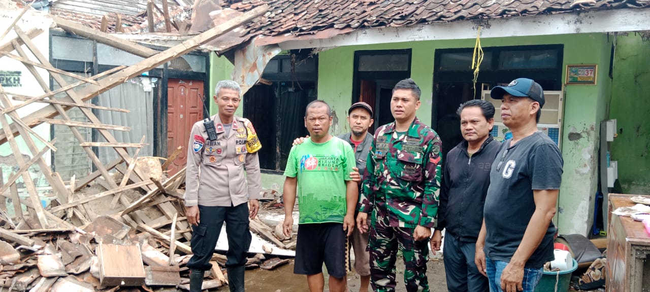 Polsek Tarogong Kidul Polres Garut melalui Bhabinkamtibmas Kel. Sukagalih Aipda Iwan bersama Babinsa dan aparatur Kelurahan melakukan pemantauan ke lokasi rumah roboh yang menimpa salah satu warga Desa binaannya.