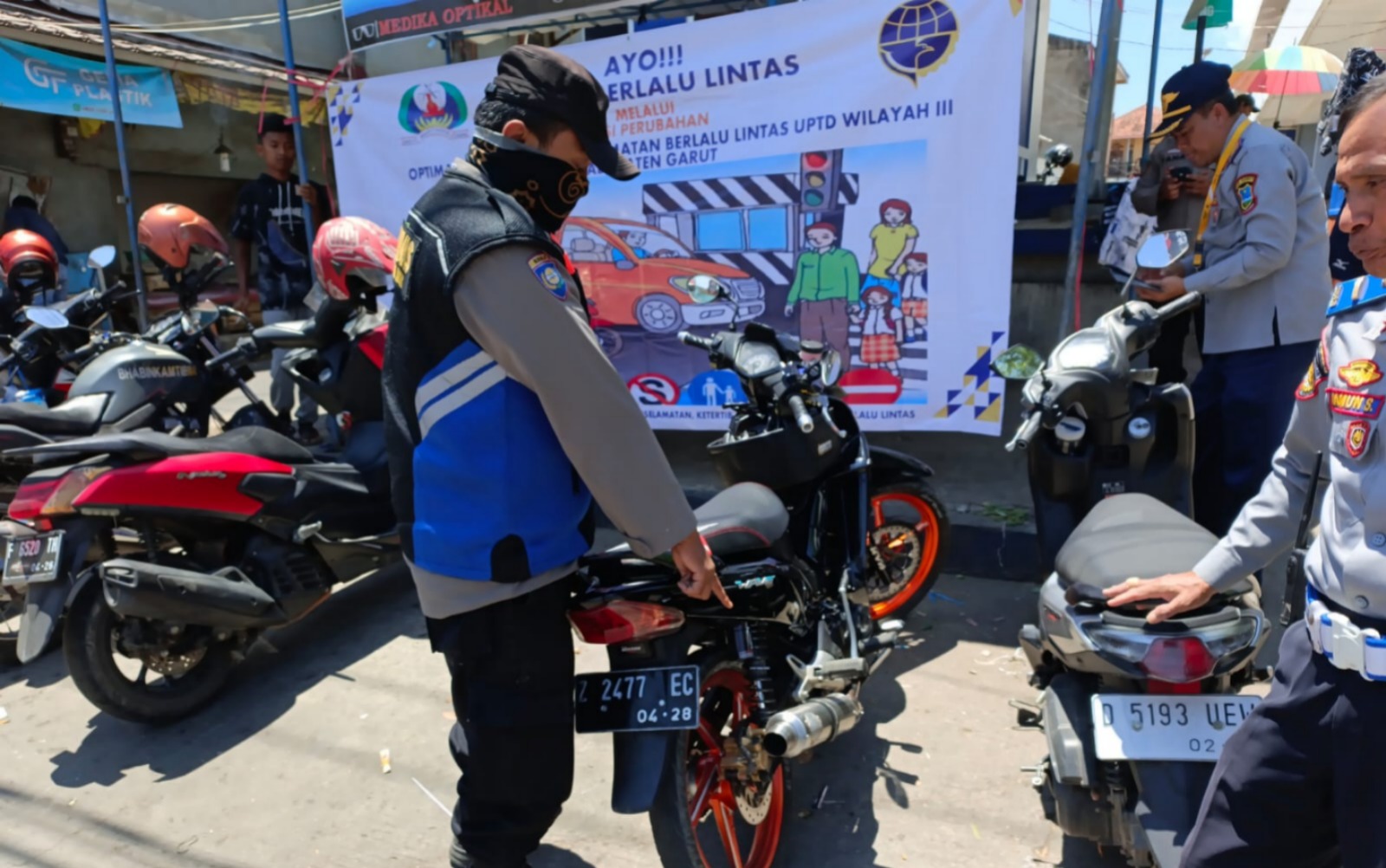 Polsek Wanaraja Polres Garut melakukan penindakan kepada 9 unit kendaraan roda dua yang memakai knalpot tidak sesuai spesifikasi teknis / bising / brong.