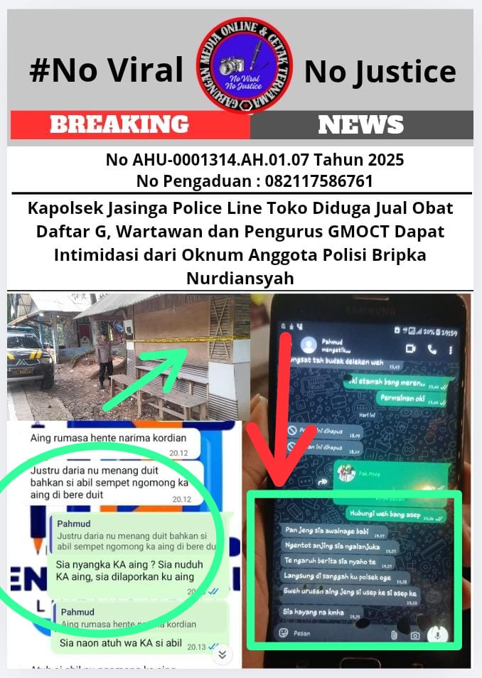 *Press Release GMOCT* Kapolsek Jasinga Police Line Toko Diduga Jual Obat Daftar G, Wartawan dan Pengurus GMOCT Dapat Intimidasi dari Oknum Anggota Polisi Bripka Nurdiansyah Jasinga, 26 Januari 2026 – Setelah berita berjudul “Seolah Kebal Hukum, Toko Diduga Menjual Obat Keras Ilegal Golongan G di Jasinga Tetap Buka” yang tayang pada 24 Januari 2026 melalui GMOCT (Gabungan Media Online dan Cetak Ternama) viral, Kapolsek Jasinga Iptu Agus Hidayat merespon cepat sesuai harapan masyarakat yang merasa resah dan menyampaikan kepada awak media. Pada 26 Januari 2026, pihaknya memasang garis Police Line di lokasi warung tersebut dan selanjutnya akan melakukan koordinasi dengan Satpol PP setempat untuk membongkar bangunan yang digunakan sebagai sarana peredaran obat terlarang. Kapolsek Jasinga menyatakan dengan tegas bahwa diwilayah hukum nya akan disterilkan dari hal-hal yang merusak generasi bangsa, serta meminta maaf atas apa yang dilakukan oleh Bripka Nurdiansyah alias Gaper alias Pahmud. Namun di balik respon positif tersebut, terjadi insiden yang mencederai profesi wartawan. Pasca tayangnya berita awal, salah satu wartawan dari media Bentengmerdeka (yang tergabung dalam GMOCT) mendapatkan intimidasi dan ancaman diduga dari Bripka Nurdiansyah alias Gaper alias Pahmud yang mengaku sebagai Bhabinkamtibmas desa Jasinga, anggota Polsek Jasinga. Diduga, Bripka Nurdiansyah tidak terima dengan pemberitaan tentang peredaran obat terlarang di wilayah hukum Polsek Jasinga. Tak hanya wartawan, Sekretaris Umum GMOCT Asep NS juga mengalami hal serupa saat mencoba mempertanyakan tindakan Bripka Nurdiansyah. Saat menghubungi wartawan Bentengmerdeka, Bripka Nurdiansyah dikabarkan mengatakan, “Maksud kamu apa ngacak-ngacak Jasinga. Diserang sama gua ke rumah lo. Liatin aja, tanggung gila gua. Bangsat lu.” Selain itu, dia juga menuduh Asep NS dan wartawan terkait mendapatkan koordinasi dari pelaku peredaran obat terlarang golongan G. Dalam pesan singkat WhatsApp kepada wartawan Bentengmerdeka, Bripka Nurdiansyah bahkan menyampaikan kalimat dalam bahasa Sunda yang diterjemahkan menjadi “Tidak Ngaruh berita kamu, dan langsung disanggah oleh Polsek juga”, yang terkesan menyatakan bahwa Polsek Jasinga tidak akan menanggapi. Namun kenyataannya, Kapolsek Jasinga langsung mengambil tindakan. Menurut informasi dari Kapolsek Jasinga dan pihak Paminal Polres Bogor yang menghubungi Asep NS, Bripka Nurdiansyah saat ini sedang menjalani pemeriksaan di Propam Polres Bogor. Seluruh jajaran GMOCT, pimpinan redaksi Bentengmerdeka, dan insan pers berharap Bripka Nurdiansyah tidak hanya diproses secara etik profesi, namun juga melakukan permintaan maaf secara terbuka dan dalam bentuk video kepada wartawan terkait dan GMOCT. Jika tidak terpenuhi serta hasil pemeriksaan tidak transparan, Asep NS beserta pimpinan redaksi Bentengmerdeka akan melakukan pelaporan ke Propam Polda Jabar. Respon cepat Kapolsek Jasinga ini semoga menjadi hal yang sama diwilayah hukum lainnya yang marak peredaran Obat-obatan Terlarang Daftar G yang merusak generasi bangsa.   #noviralnojustice #oknumpolisibripkanurdiansyah #gmoct #polri #polresbogor Team/Red (GMOCT/Bentengmerdeka) GMOCT: Gabungan Media Online dan Cetak Ternama Editor: