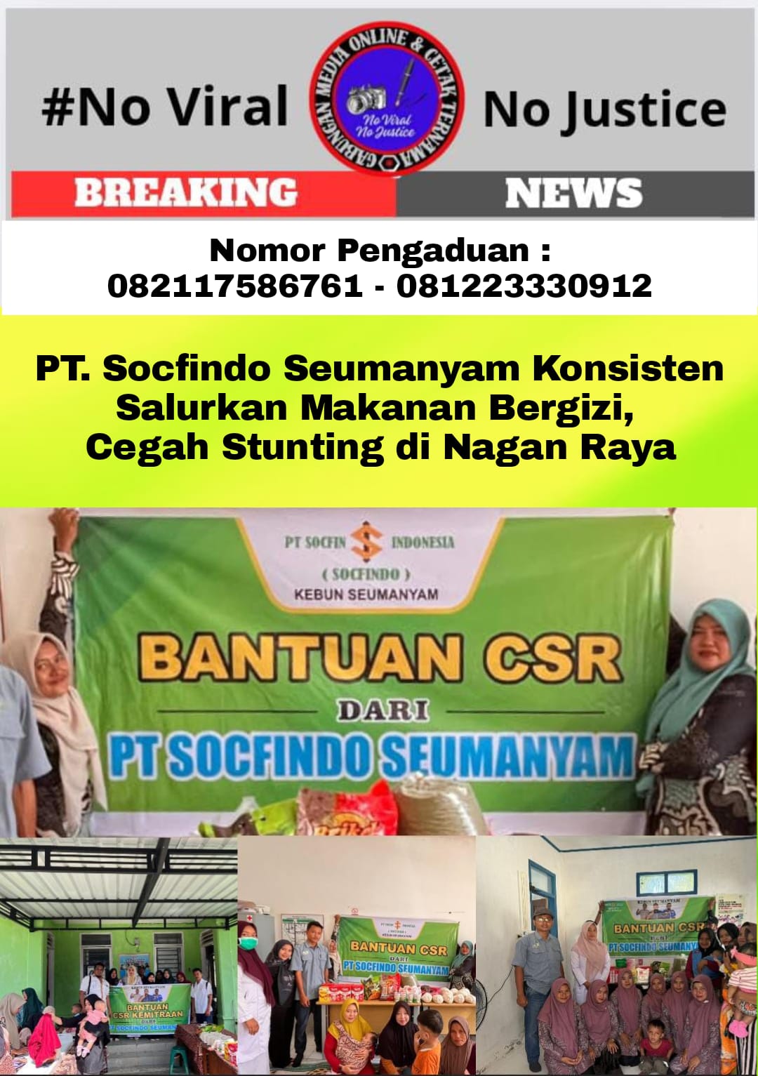 Melalui program CSR yang berkesinambungan, PT. Socfindo Seumanyam berharap dapat menjadi bagian penting dalam meningkatkan kualitas hidup masyarakat, khususnya dalam menekan angka stunting dan gizi buruk di Kabupaten Nagan Raya.