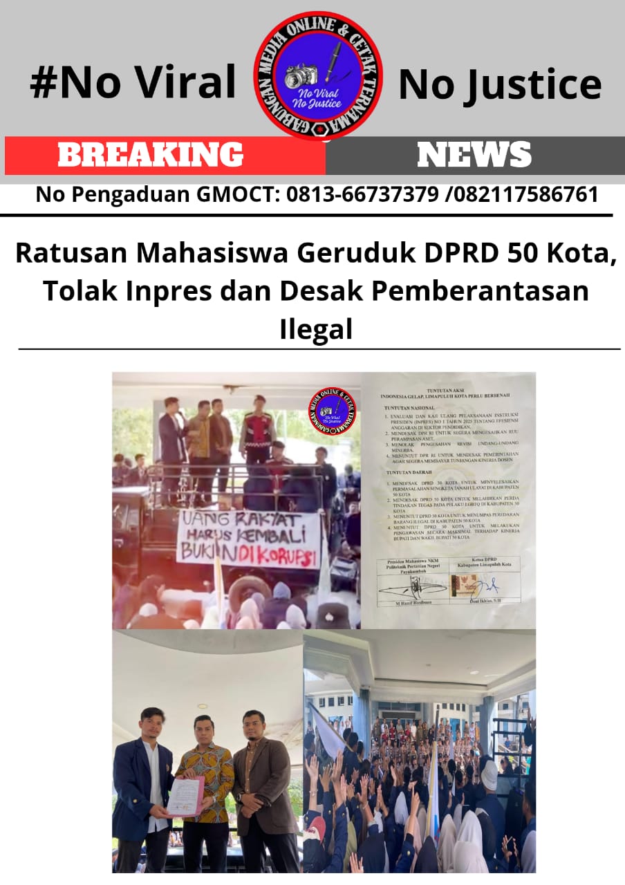 Berikut tuntutan mahasiswa yang diterima oleh Ketua DPRD Kabupaten Lima Puluh Kota: