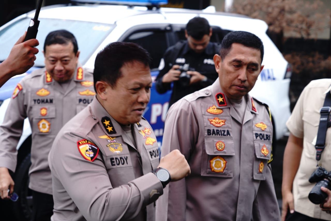 Eksposelensa.com | Wakapolda Jawa Barat Brigjen. Pol. Bariza Sulfi mendampingi Sahli Kapolri Irjen. Pol. Eddy Sumitro Tambunan beserta Kasdam III/Siliwangi Brigjen TNI Agus Saeful melaksanakan Patroli bersama dalam rangka pengecekan Proses Pemungutan Suara Pemilu Tahun 2024 di Wilayah Kota Cimahi, Rabu (14/2/2024).